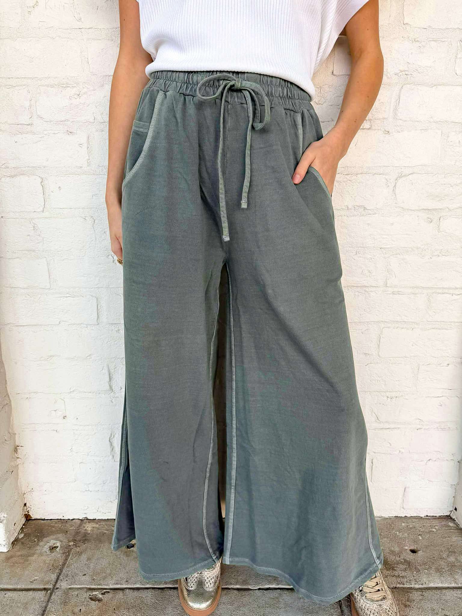 Around Town Ash Jade Terry Washed Pants