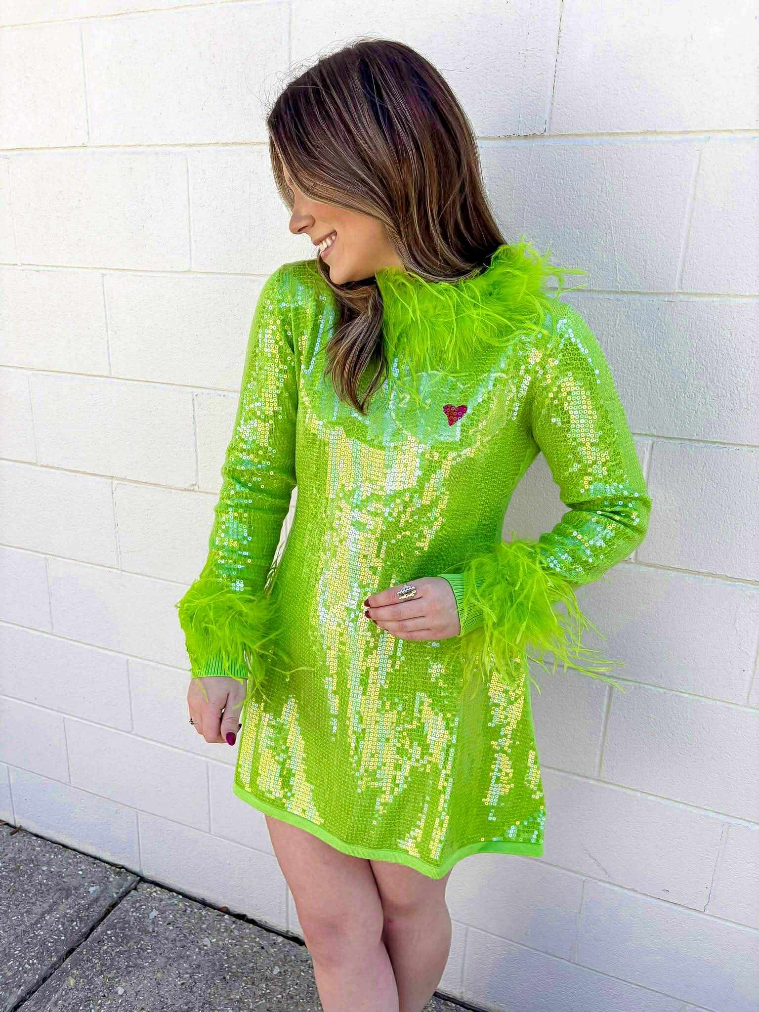 Queen Of Sparkles Green Full Sequin Grinch Dress