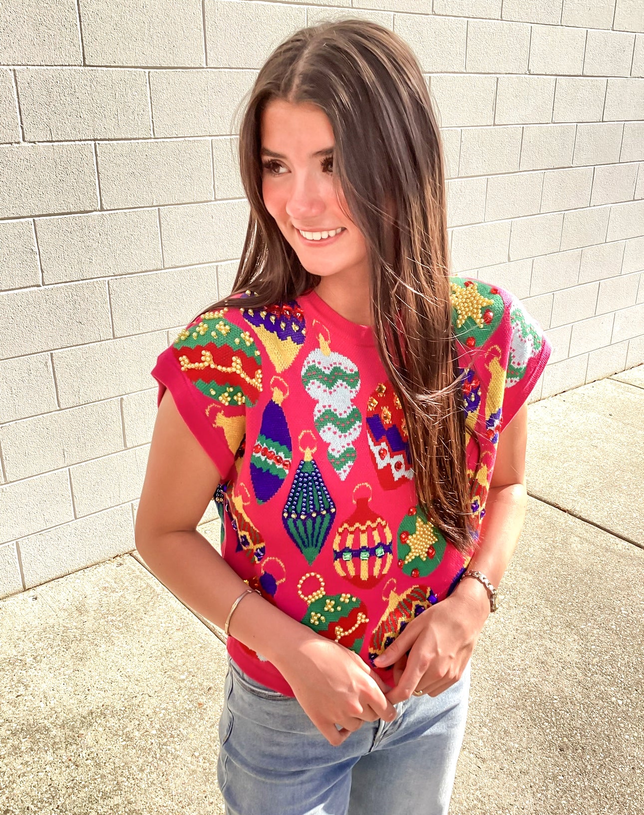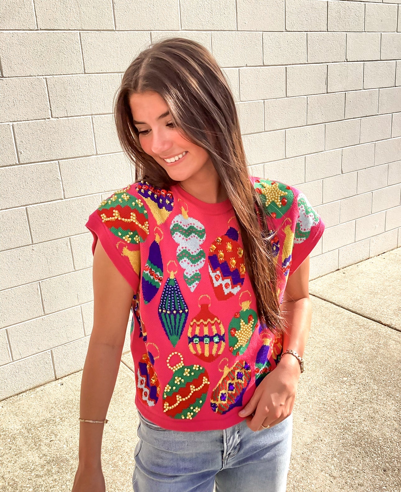 Queen Of Sparkles Hot Pink Multi Jeweled Ornament Top