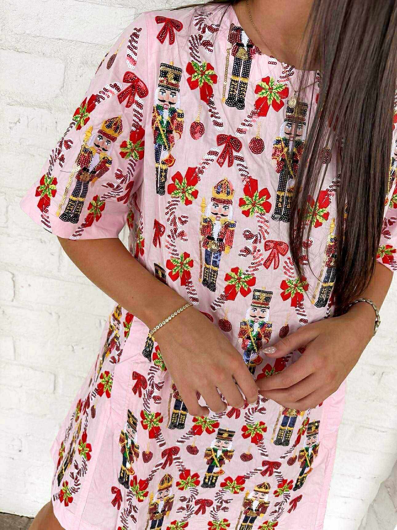 Get ready to sparkle in our Queen Of Sparkles Light Pink Cotton Nutcracker & Candy Cane Dress! Perfect for Christmas, this dress is made with high-quality cotton for comfort and features a festive nutcracker and candy cane print. Spread holiday cheer and stand out in this beautiful dress!