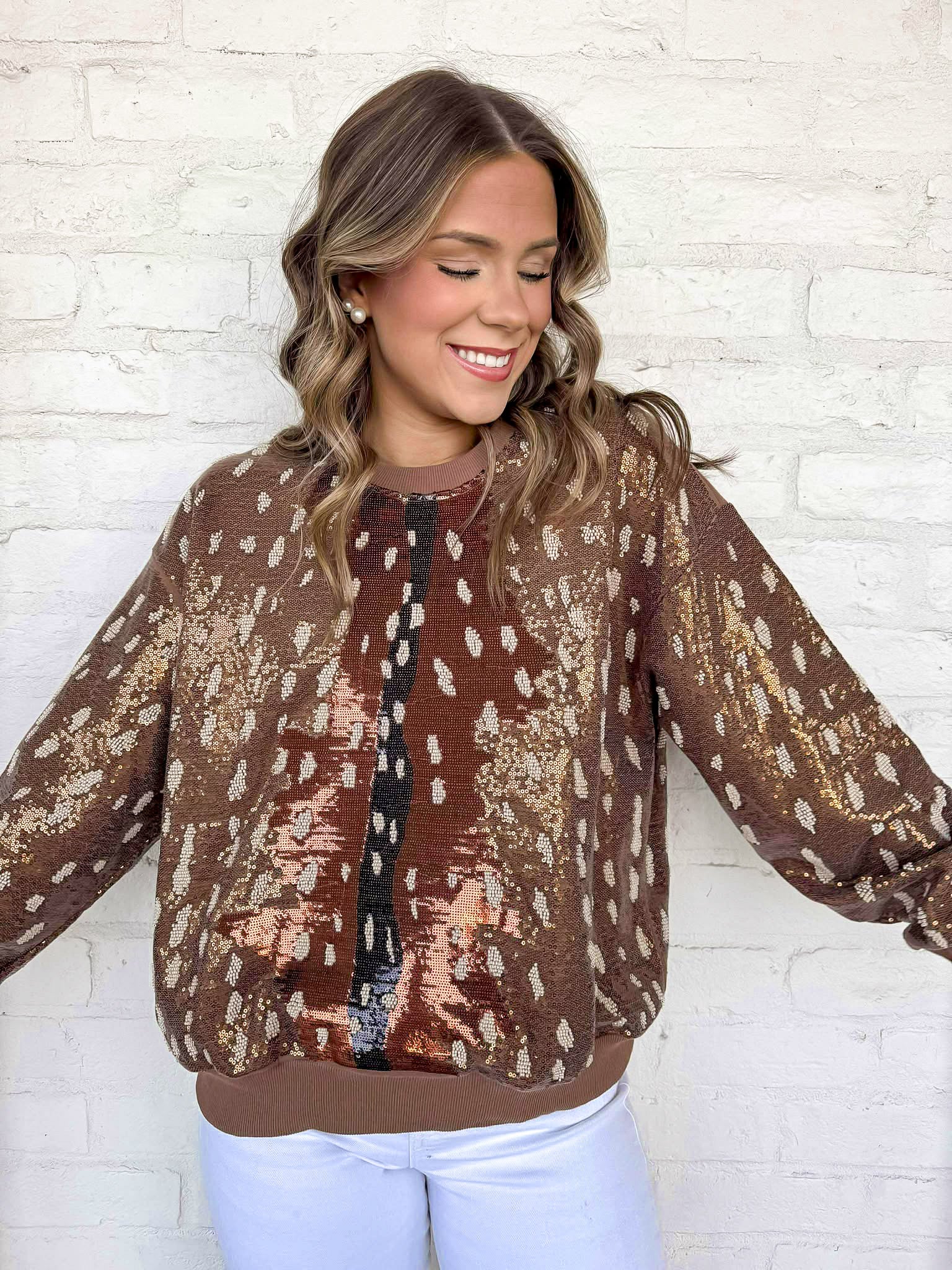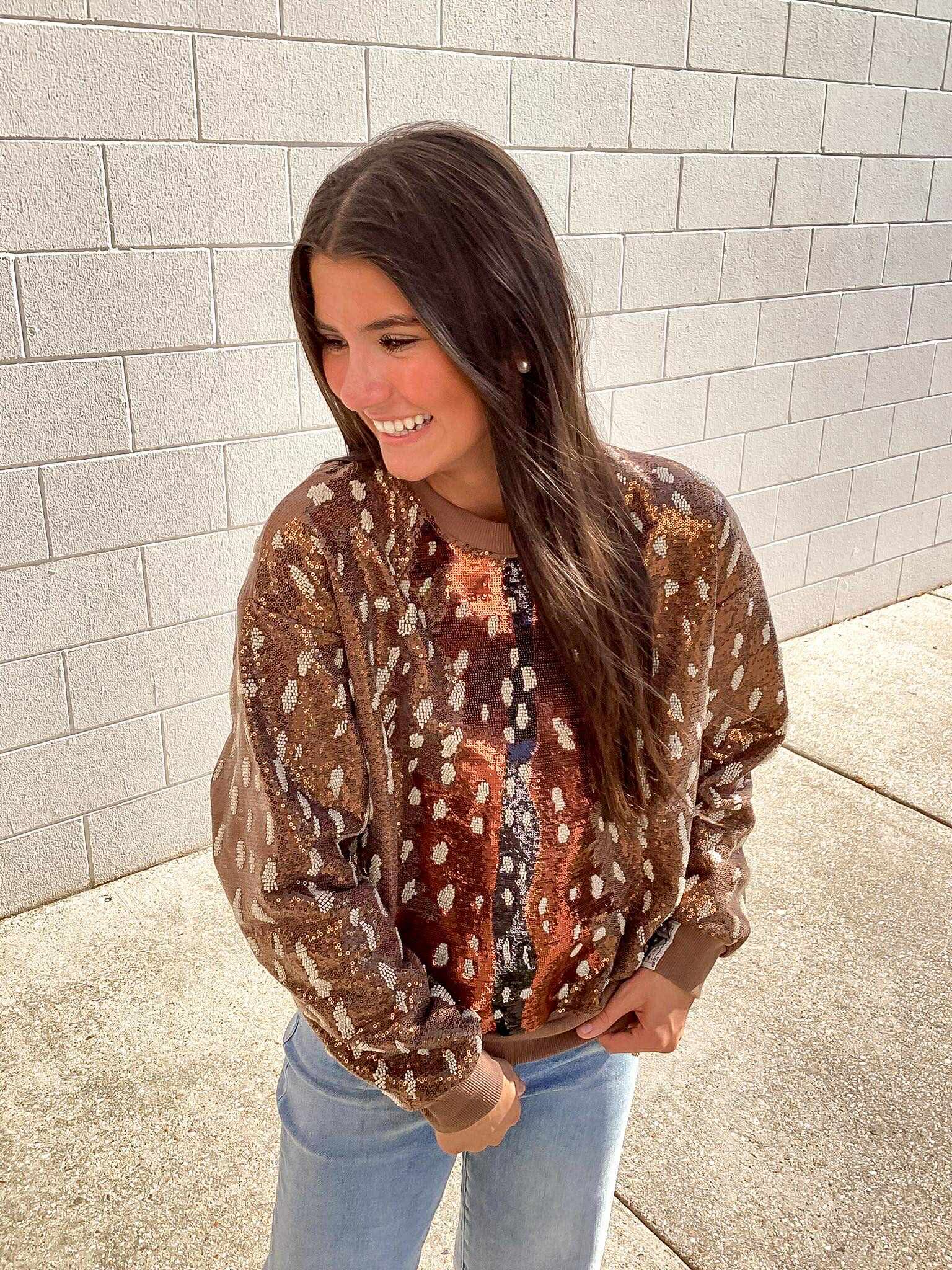 The Queen Of Sparkles Brown Deer Sweatshirt is a dream come true for anyone looking for a stylish and comfortable sweatshirt. With its unique design and cozy fit, this sweatshirt will make a statement and keep you warm all day long. Perfect for any occasion, whether it's a casual day out or a night in, this sweatshirt will surely be a hit.