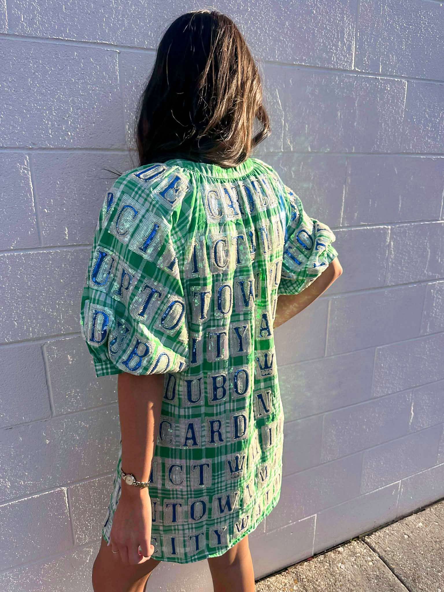 Queen Of Sparkles Green NOLA Street Tile Button Up Dress