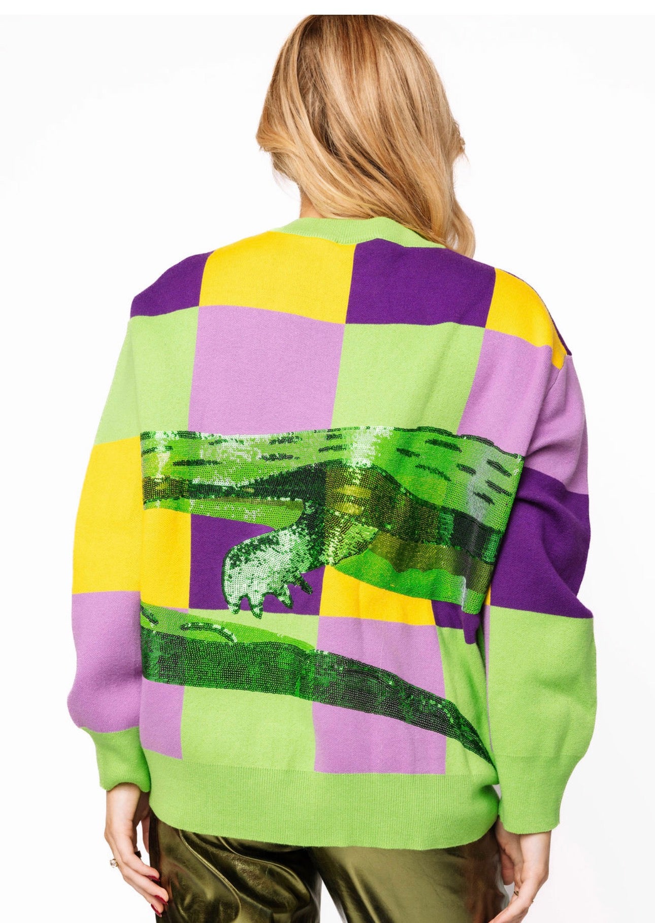 Queen Of Sparkles Mardi Gras Checkered Alligator Queen Sweater