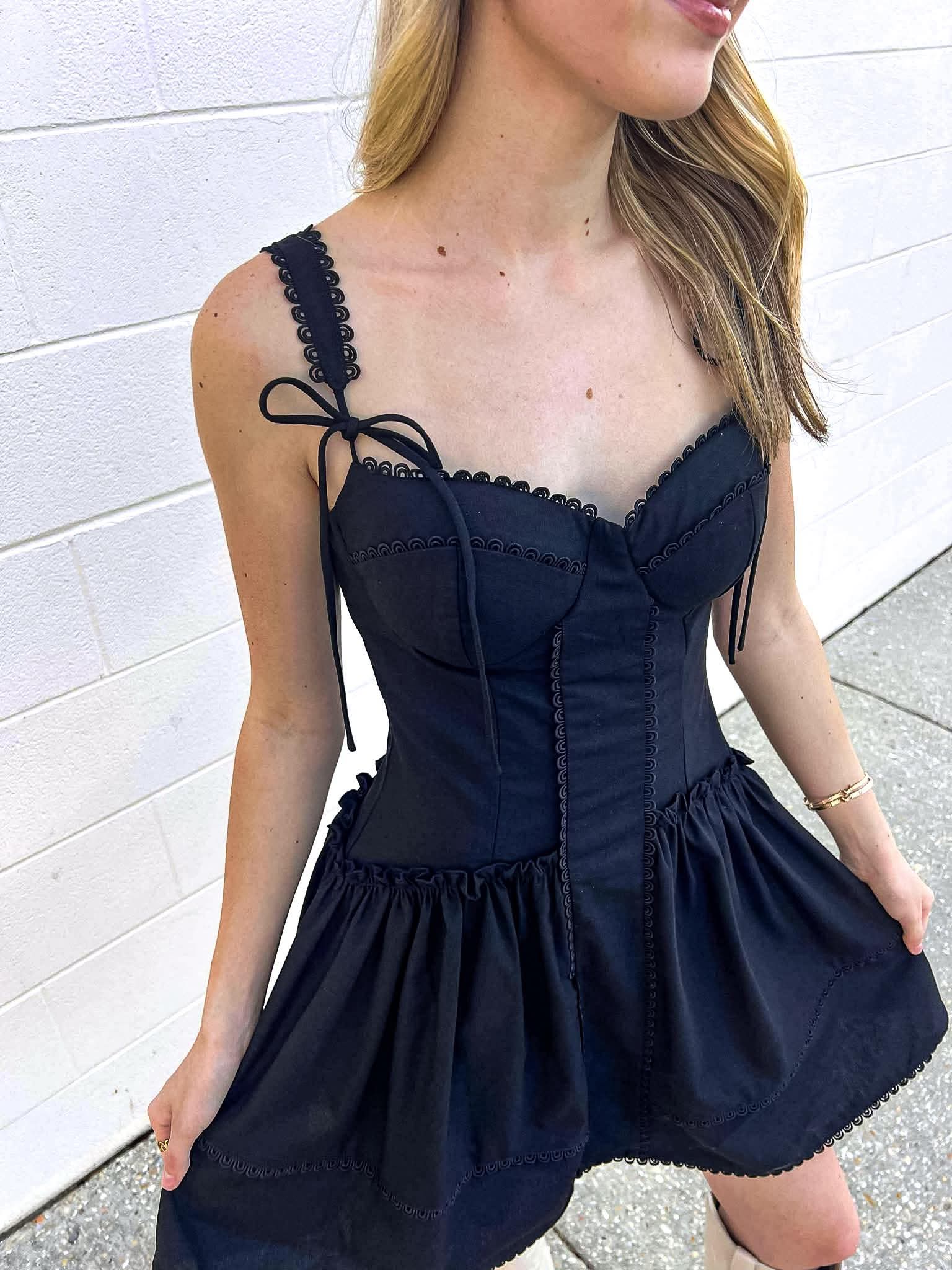 Step out in style with our Darling Love Black Dress! This scallop dress features a classic black color and includes comfortable pads for a perfect fit. Make a statement and turn heads wherever you go. Perfect for any occasion, this dress will have you feeling confident and chic.