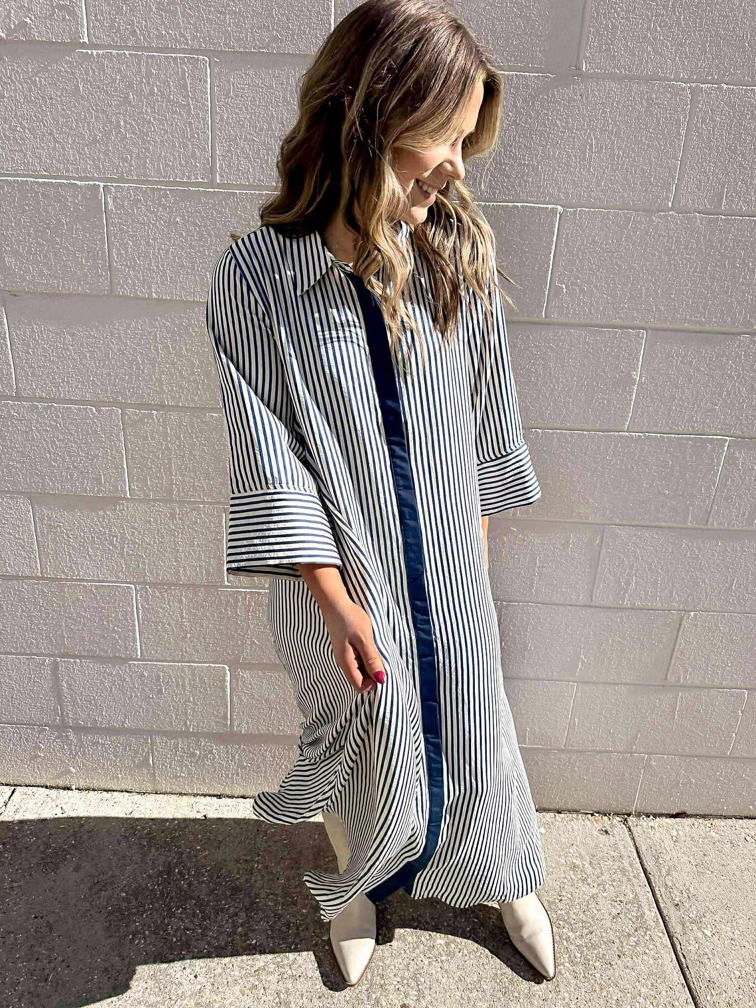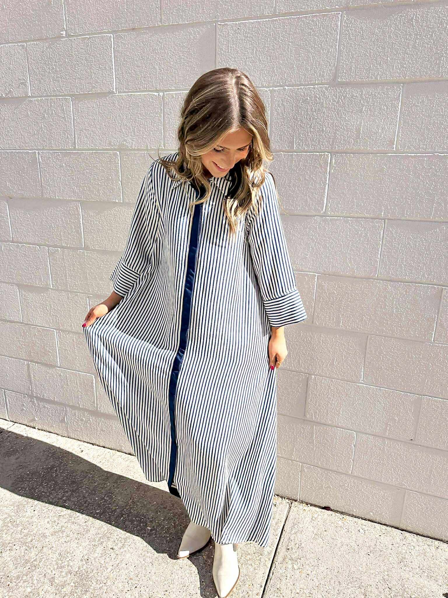 Feel confident and stylish in our Feel Good Indigo Dress. This elegant stripe dress will enhance your look and make you stand out from the crowd. With its comfortable fit and timeless design, you'll feel good wearing it for any occasion. Elevate your wardrobe with our Indigo Dress today!