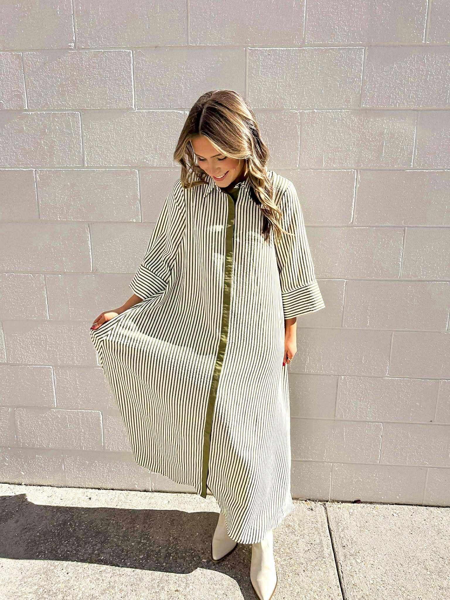 Transform your wardrobe with the Feel Good Olive Dress! This stunning green stripe dress will elevate your style to new levels. Its vibrant color and timeless design make it the perfect addition to any outfit. Look and feel confident and stylish with this must-have dress.