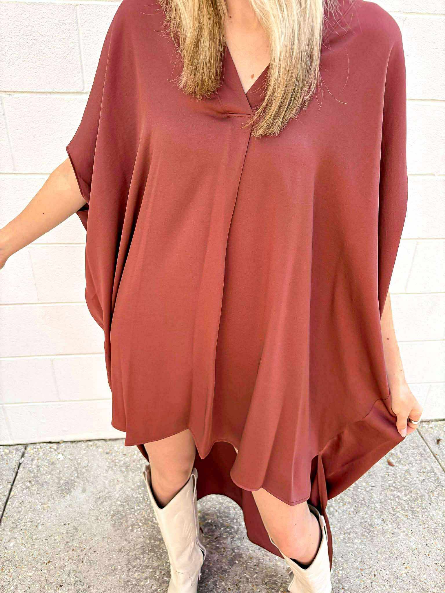 Introducing the Number Details Dress! Made with washed poly silk, this caftan dress is both luxurious and comfortable. The double notched design adds a touch of elegance, while the high low hem offers a unique and flattering silhouette. Perfect for making a statement at any event.