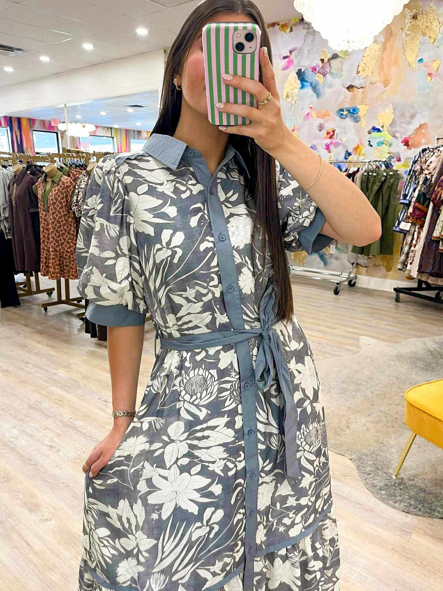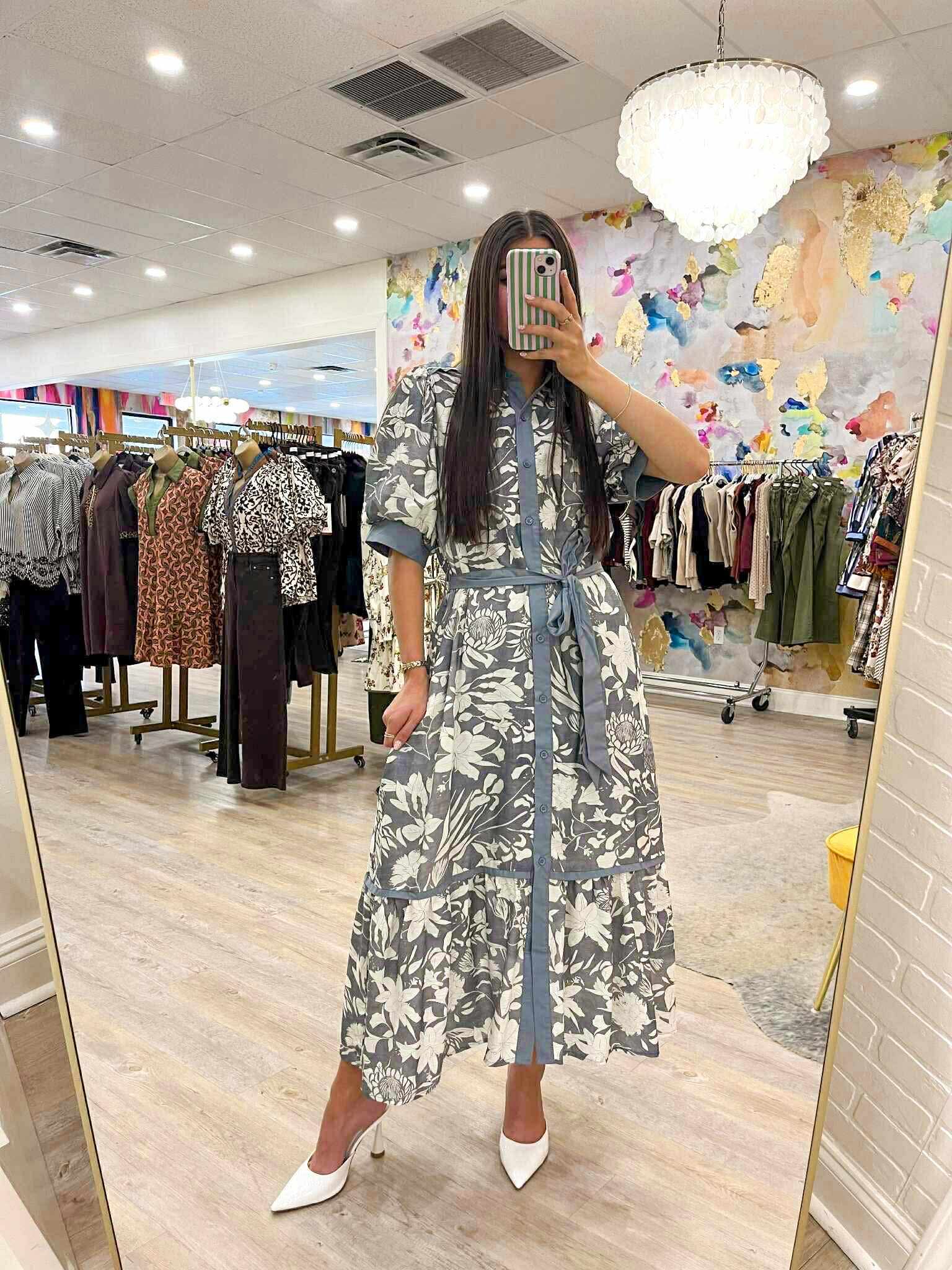 Elevate your style with our Good Things Come Grey Dress. This versatile blue gray dress is perfect for any occasion, making you stand out in a sea of black dresses. Feel confident and chic with this must-have addition to your wardrobe.
