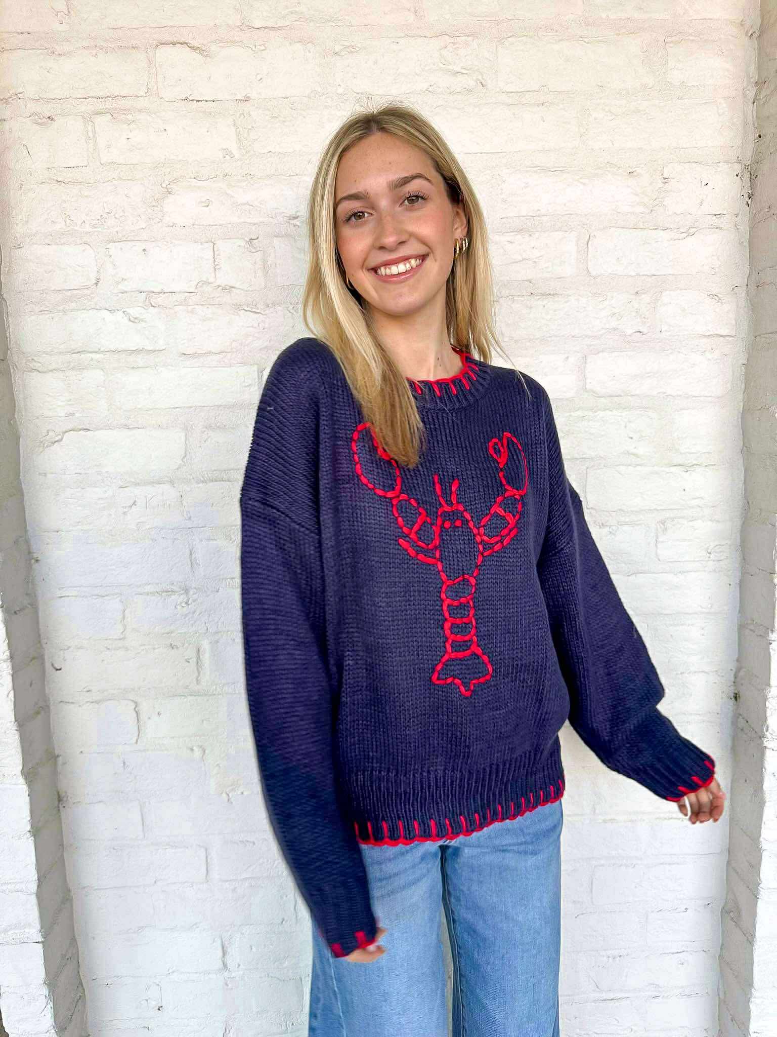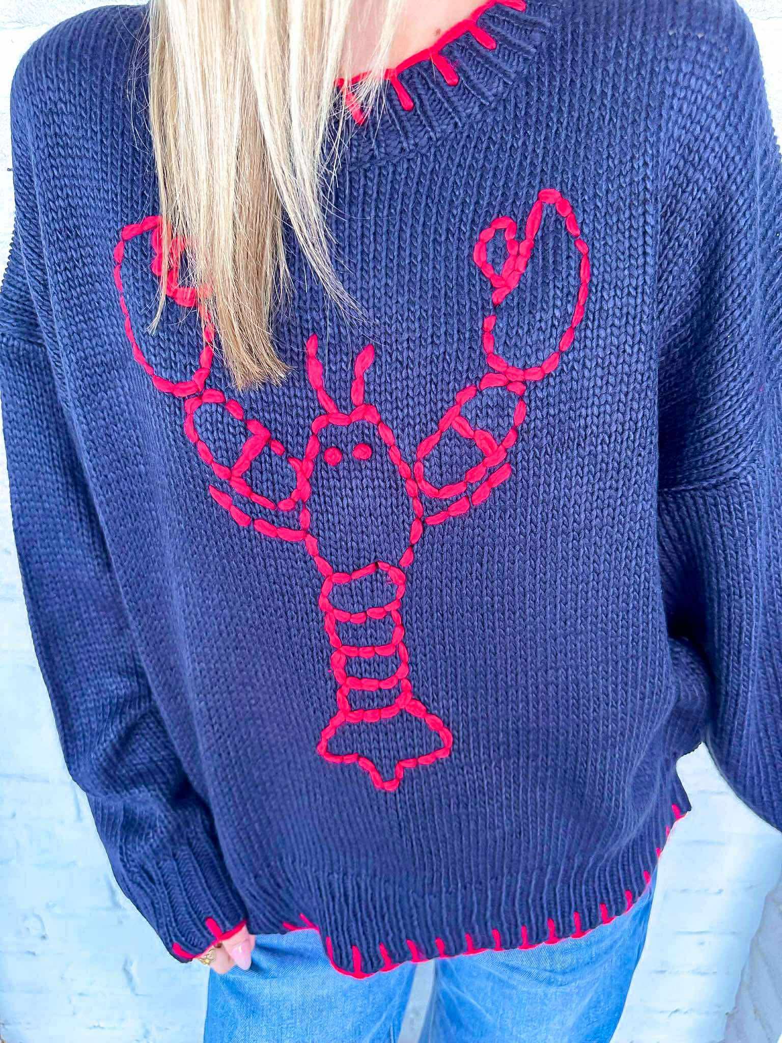 Wrap yourself in cozy comfort with our Lobster Love Navy Sweater! Made from a soft navy fabric, this sweater is perfect for any occasion. Feel confident and stylish while staying warm. Show your love for lobsters and stand out from the crowd with this unique sweater!