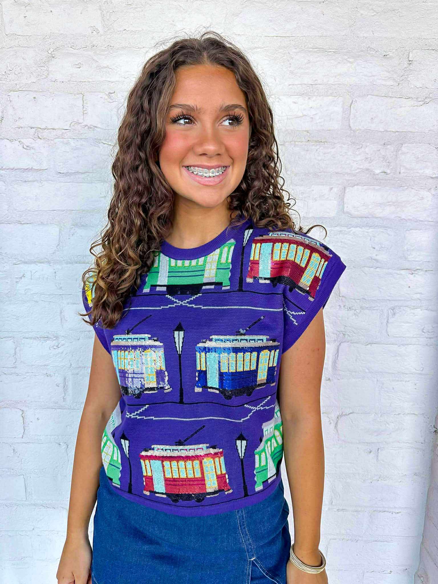 Rev up your style with the Queen Of Sparkles Dark Purple Street Car Short Sleeve Top! Featuring bold street car graphics, this top adds a touch of urban edge to your wardrobe. Perfect for a day out, stand out in this vibrant piece and exude confident, city chic vibes.