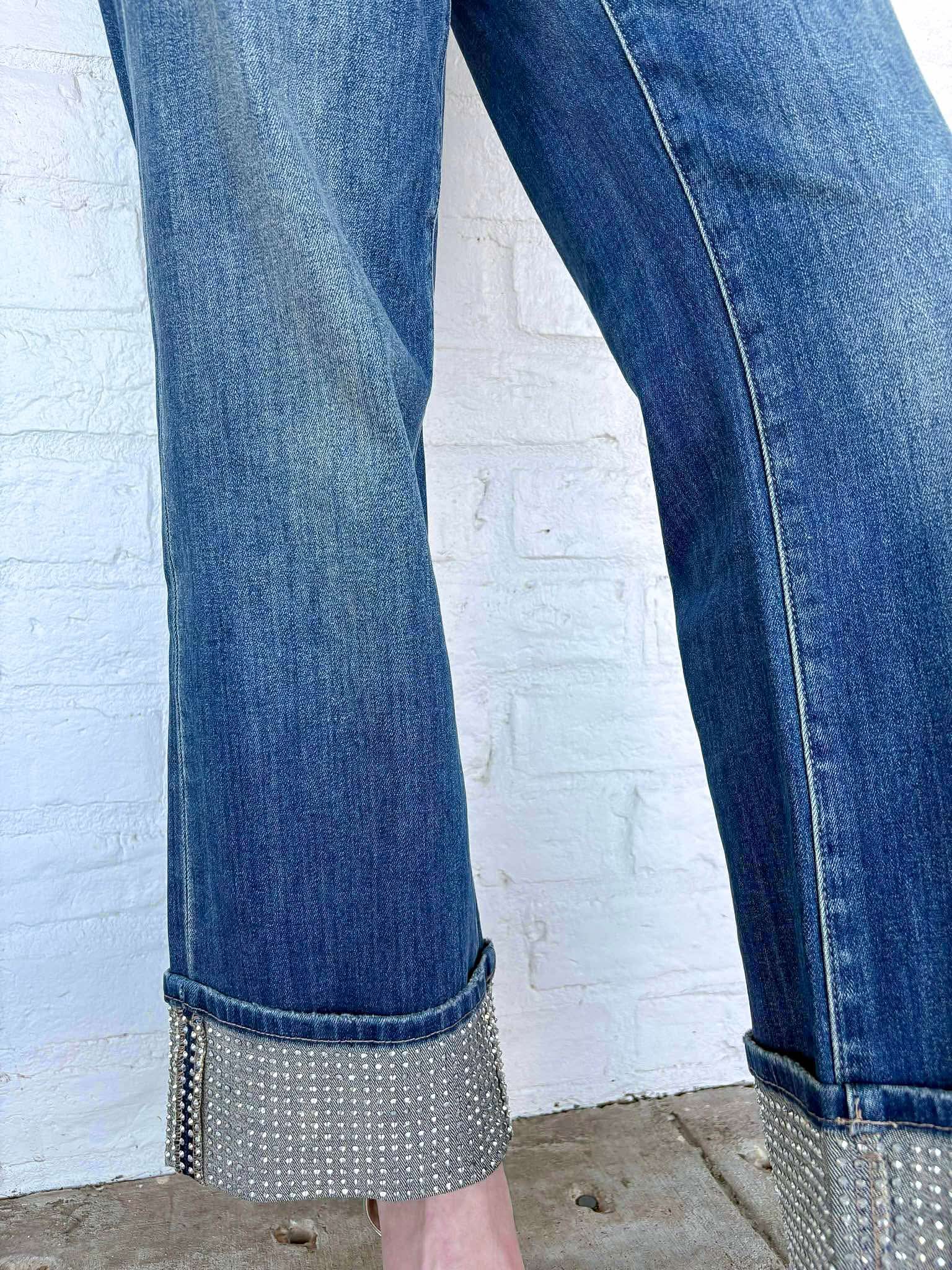 Rise Above Denim Rhinestone Cuff Jeans