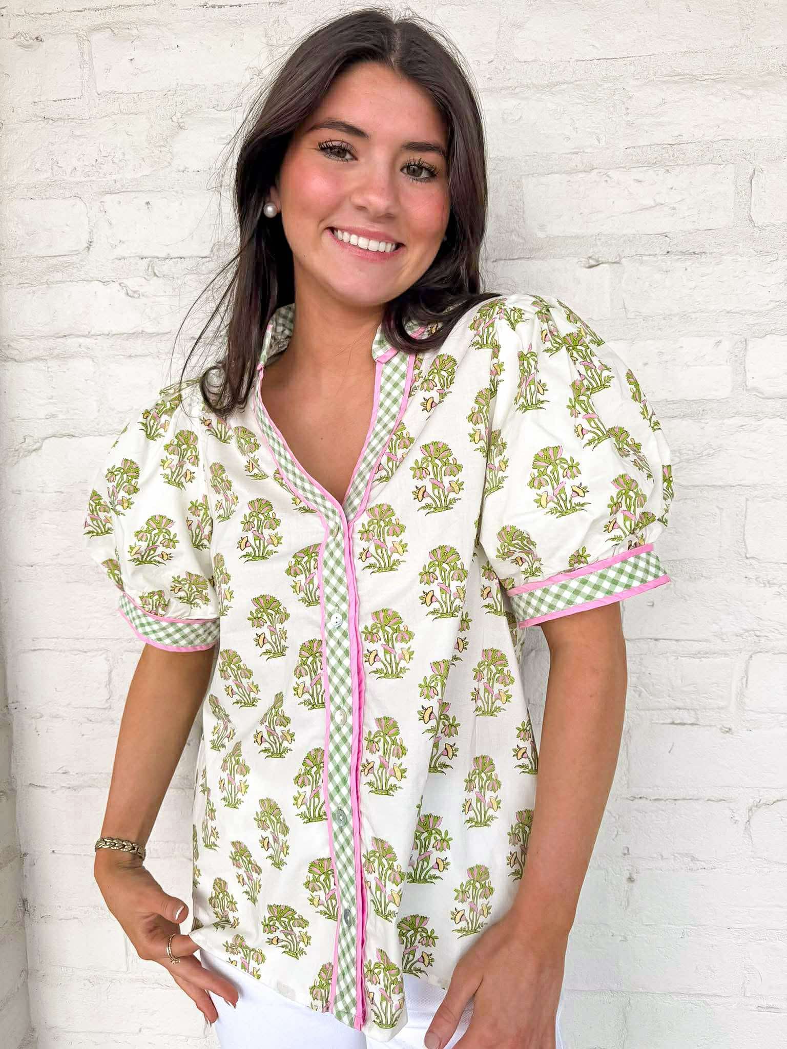 Embrace the beauty of every moment with the Season In Bloom Top. This stunning blouse elevates your wardrobe, exuding elegance and charm. Its delicate design invites compliments and inspires confidence, making it the perfect choice for any occasion. Let your style blossom!
