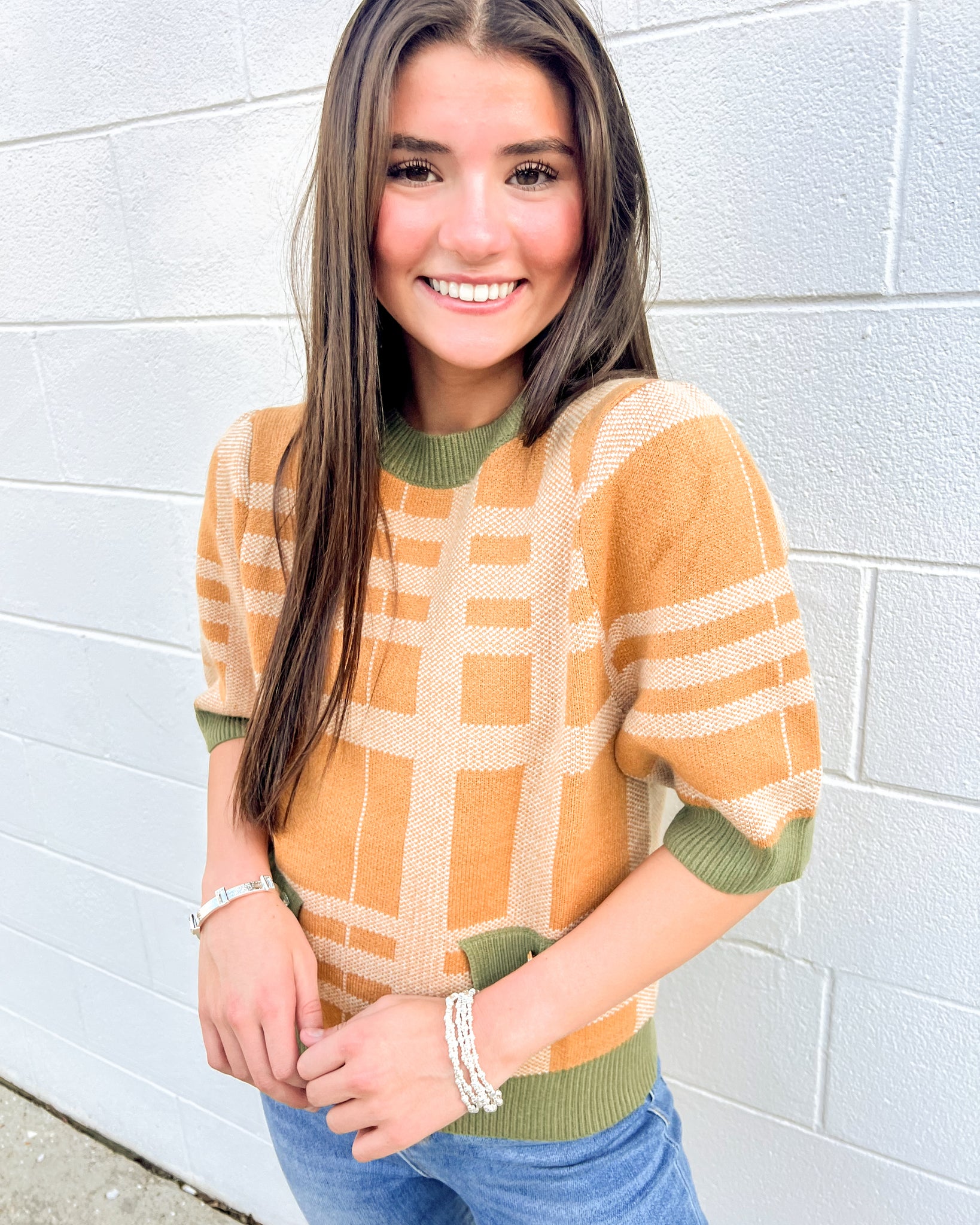 Elevate your wardrobe with our THML Heart Of Gold top. This short sleeve top boasts intricate pattern details for a unique and stylish look. Show off your fashion-forward sensibilities and make a statement with this top.