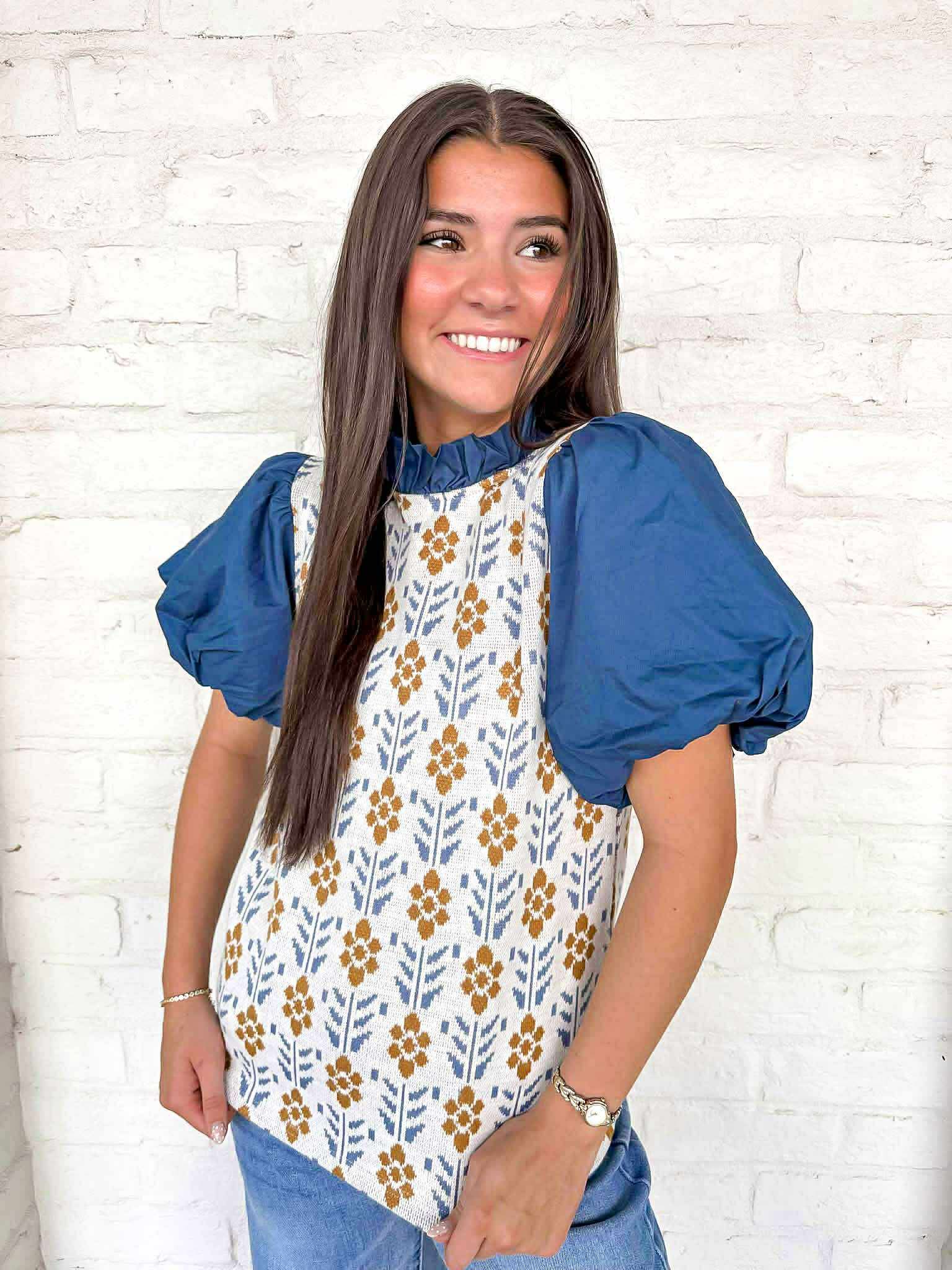 Elevate your wardrobe with our THML Mixed Media Floral Cream Top! Featuring stylish puff sleeves and a mix of textures for a unique look. The delicate floral pattern adds a touch of femininity. Make a statement in this versatile top perfect for any occasion.