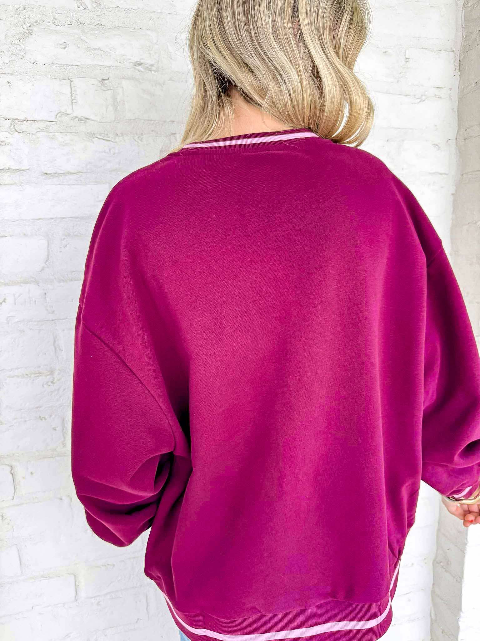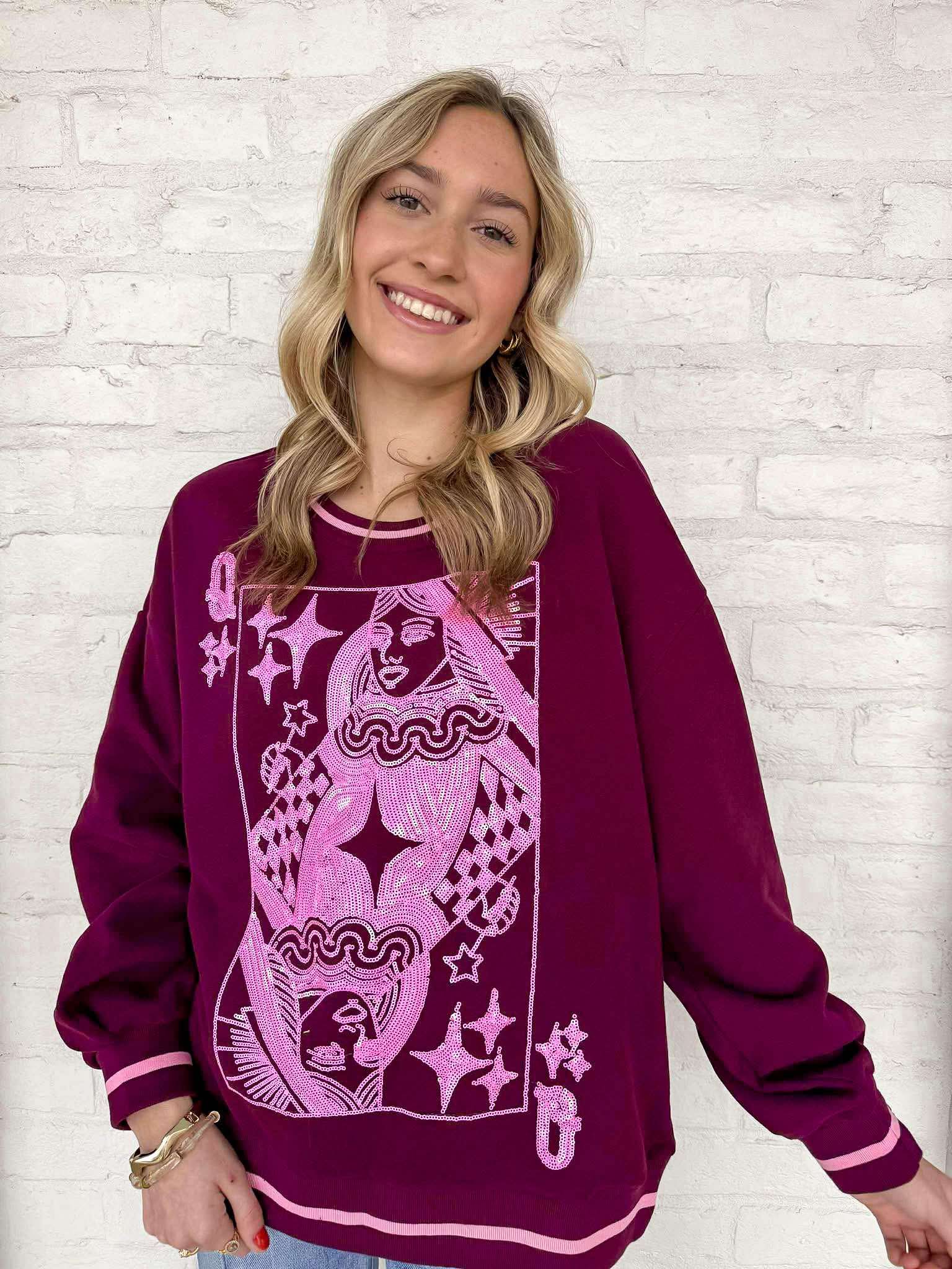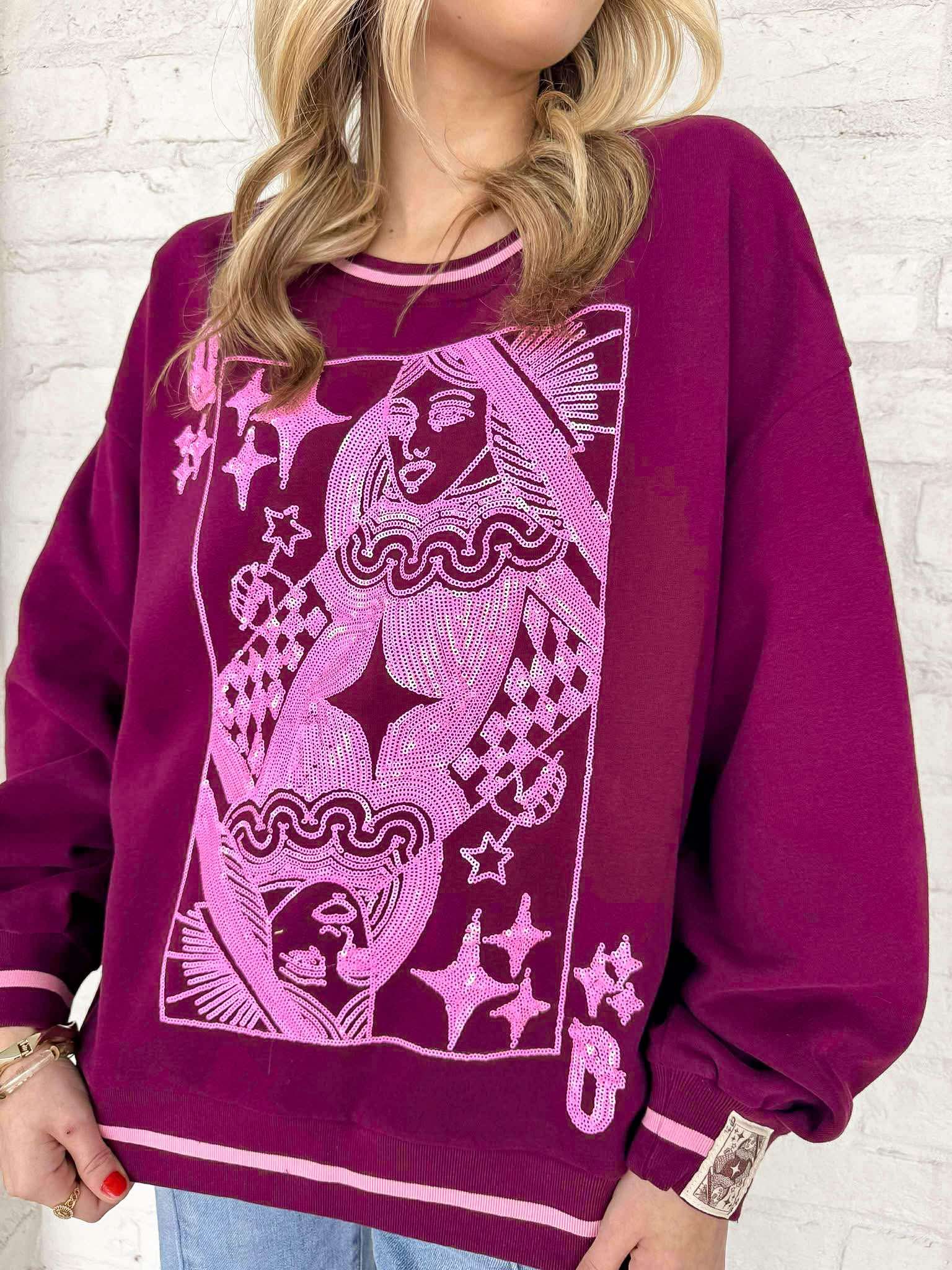 Elevate your style with the Queen Of Sparkles Maroon & Pink Logo Sweatshirt. Featuring a striking logo card, this sweatshirt adds a touch of sparkle to your outfit. Perfect for any occasion, it's a must-have for anyone who wants to make a bold statement. Upgrade your wardrobe today!