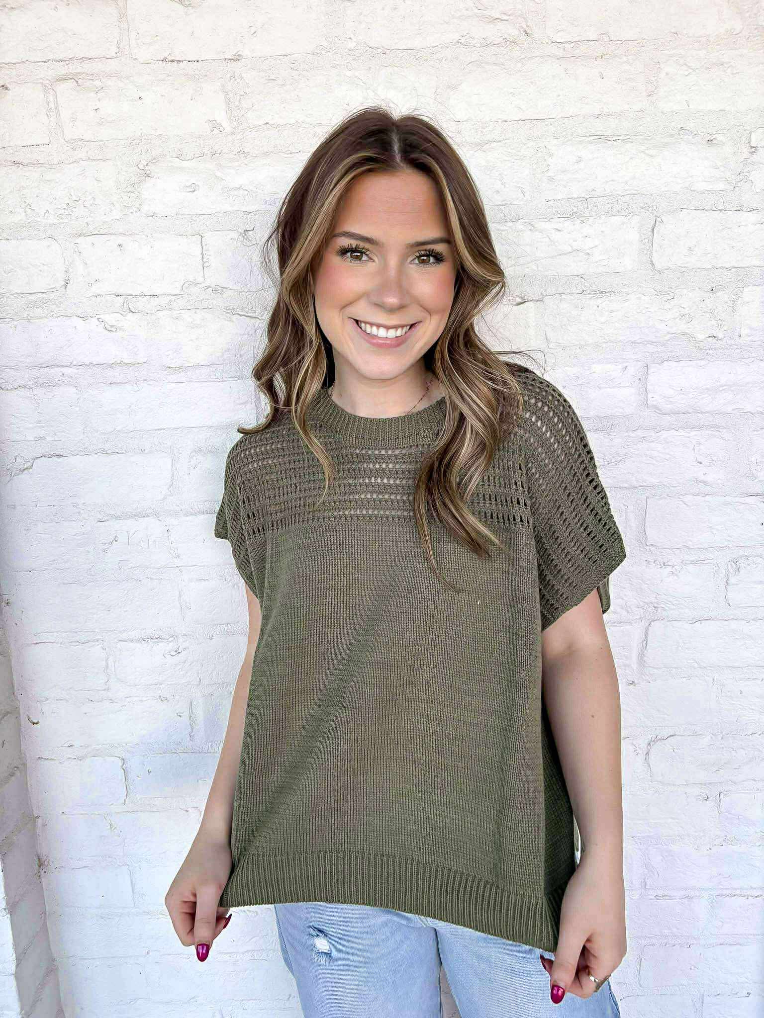Experience the perfect moment with our A Moment In Time Olive Top! The dolman sleeve and crew neck design create a comfortable and stylish look. Perfect for any occasion, this sweater top will elevate your wardrobe and make every moment feel special.