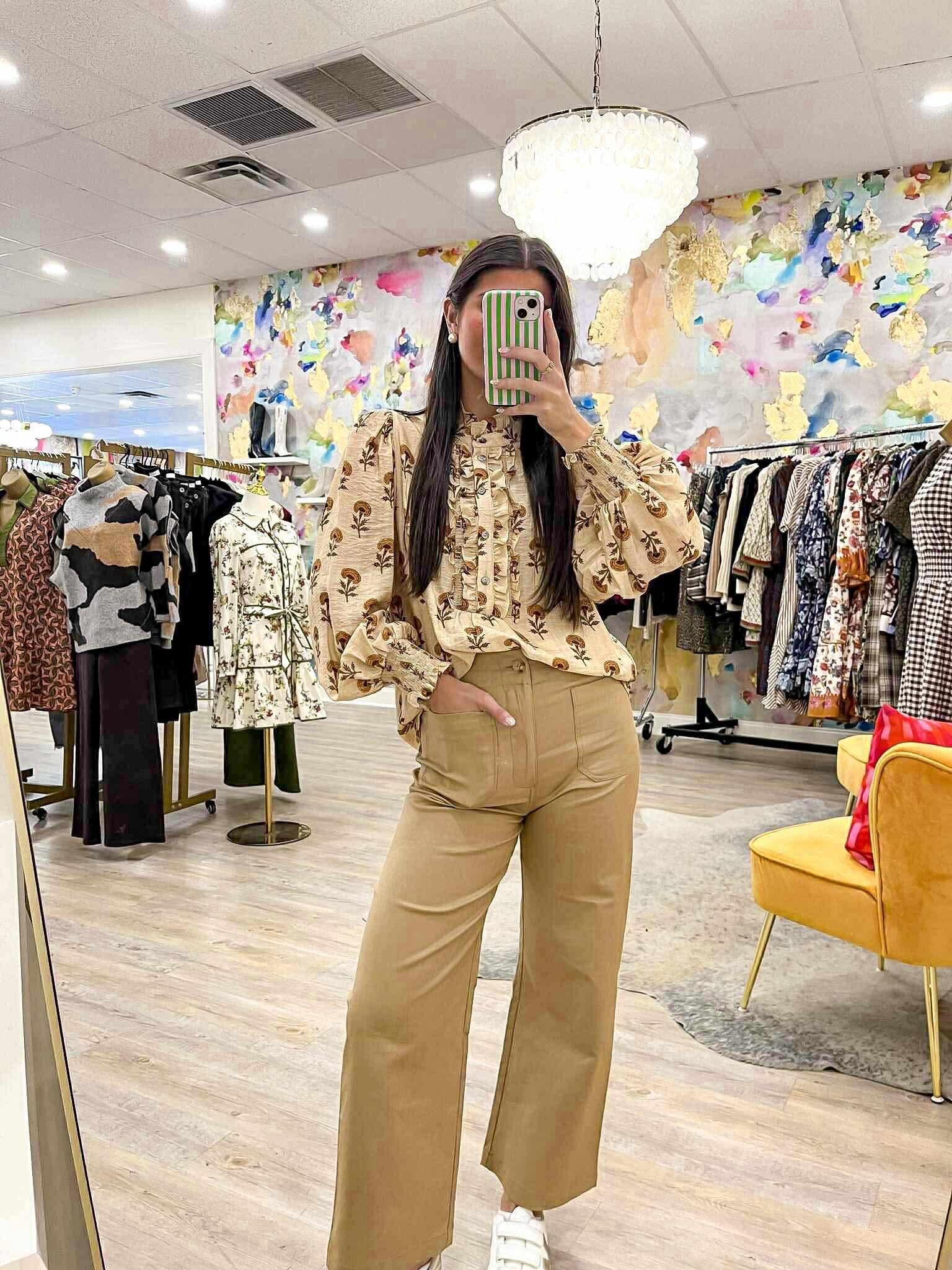 Get ready to elevate your wardrobe with our Brace Yourself Tan Top! This stunning floral print blouse will add a touch of elegance and sophistication to any outfit. Stand out and make a statement with our top, perfect for any occasion. Order now and brace yourself for compliments.