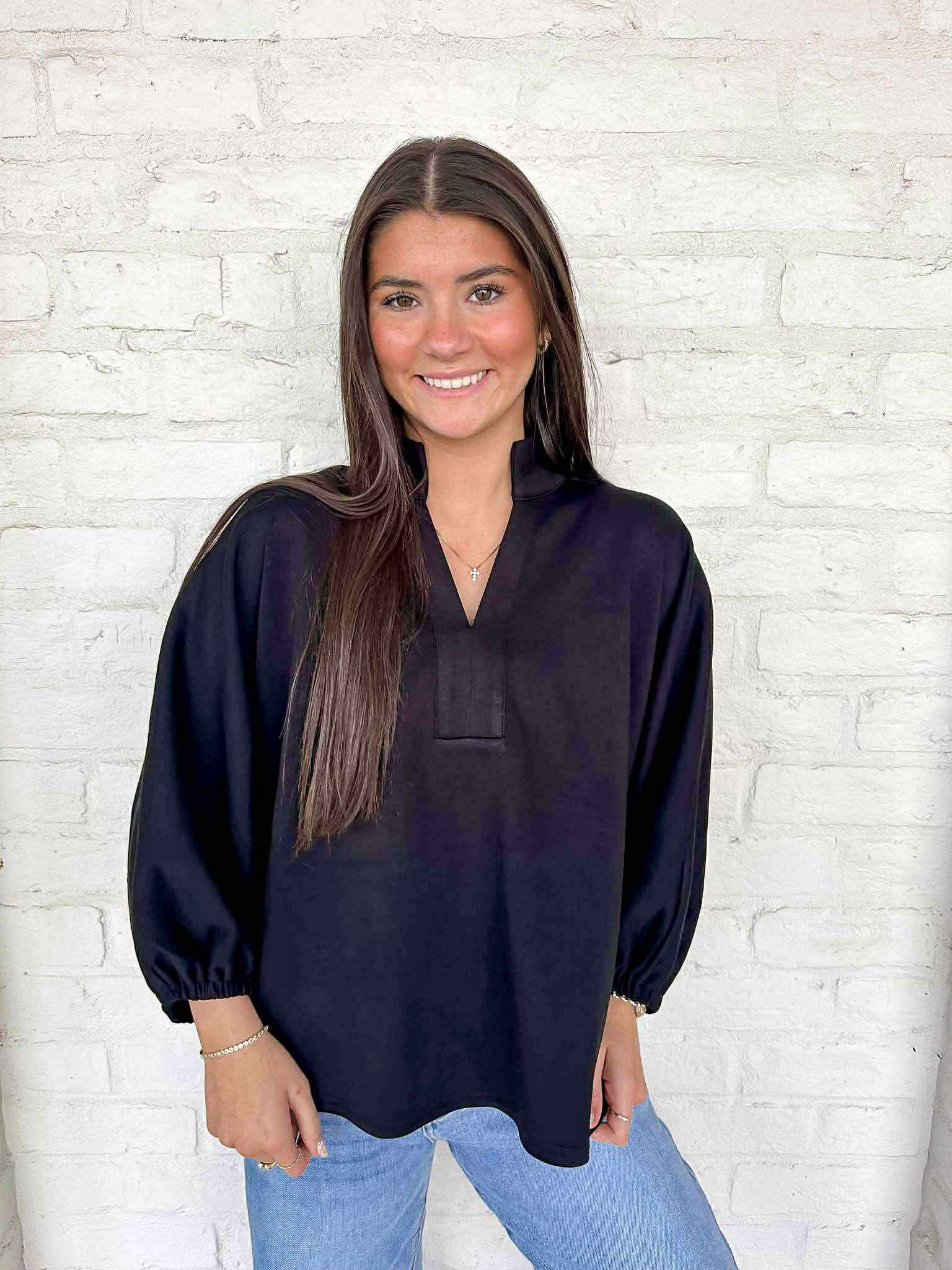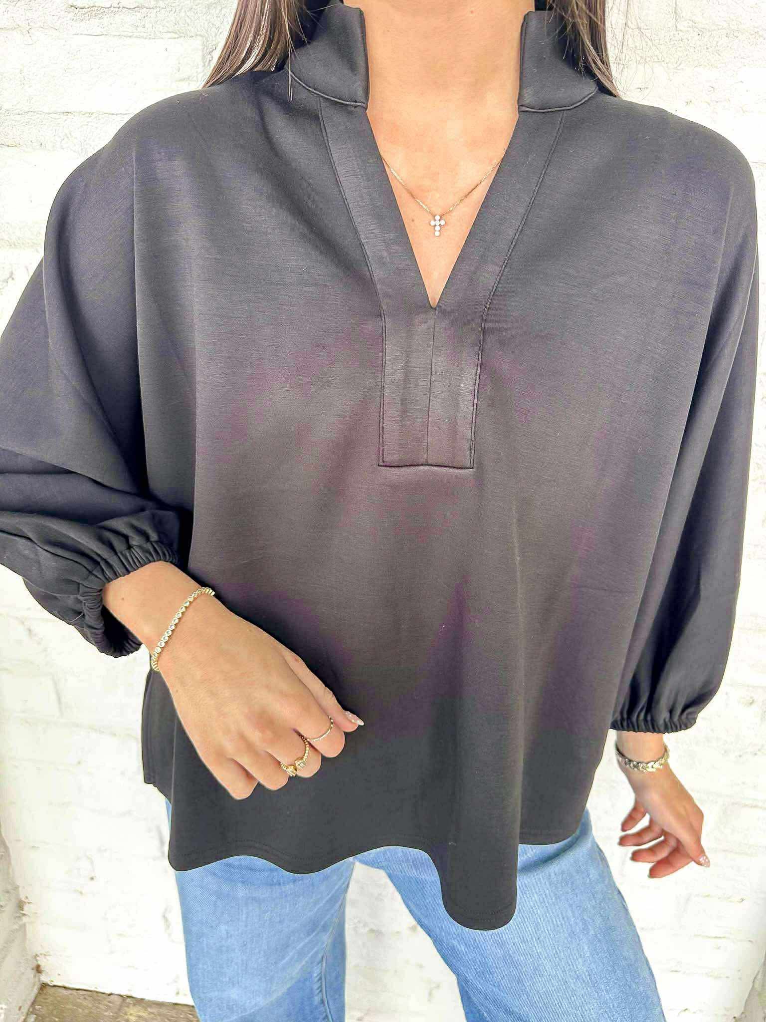 Elevate your wardrobe with our versatile Choose A Side Black Top. This basic top is a must-have for any fashion lover, with its timeless design that can easily be dressed up or down. Experience effortless style and endless possibilities with this essential piece!