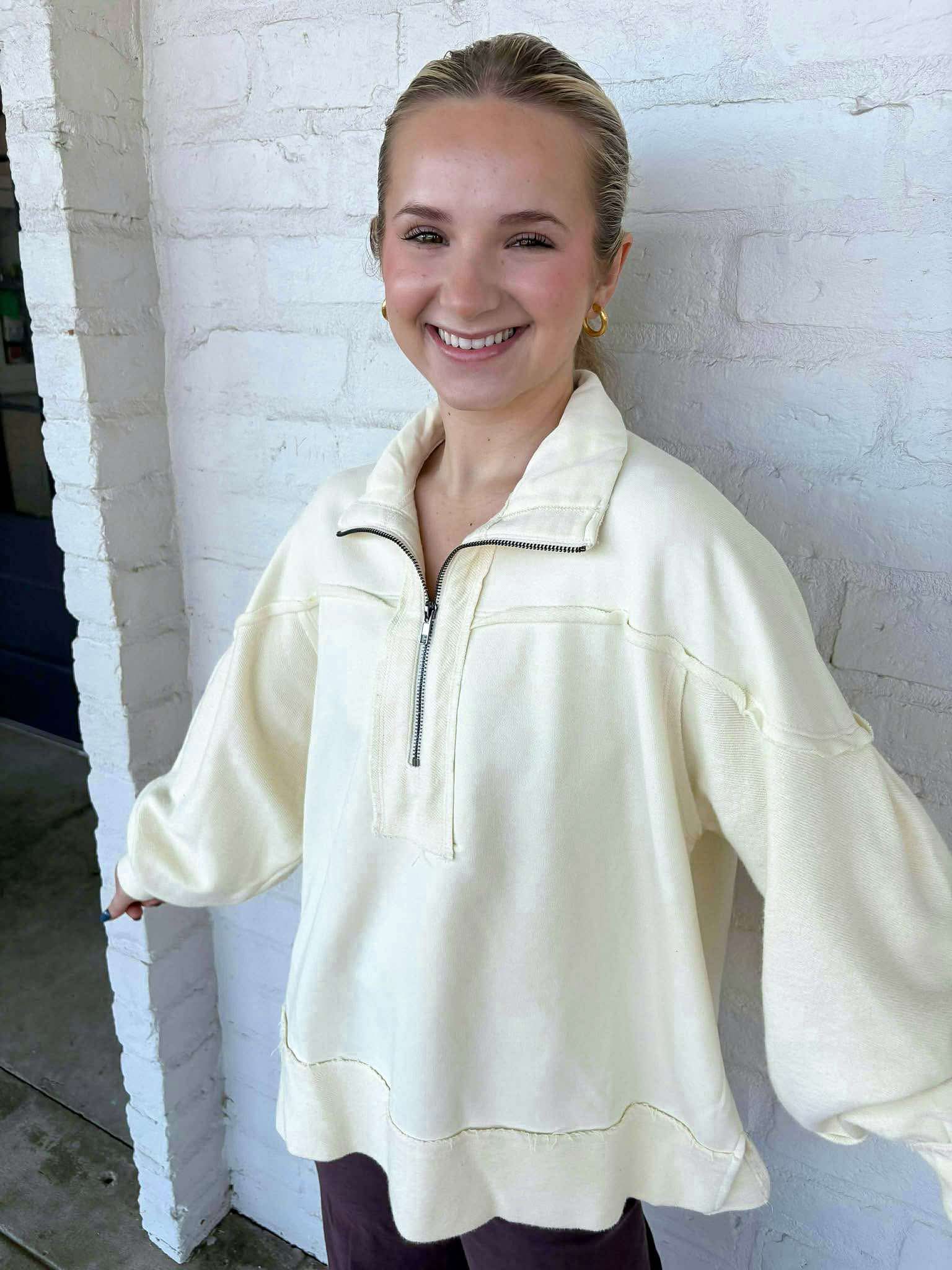 Transform your wardrobe with the Cozy Minded Ivory Sweatshirt! This pullover is perfect for chilly days, keeping you warm and stylish. Upgrade your comfort and add a touch of elegance to your outfit with this must-have piece. Don't miss out on the ultimate cozy experience!