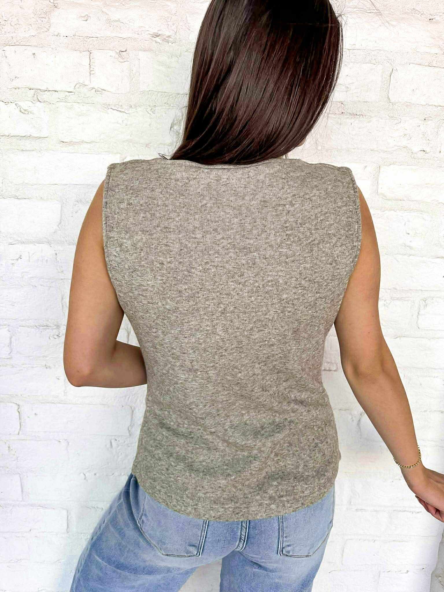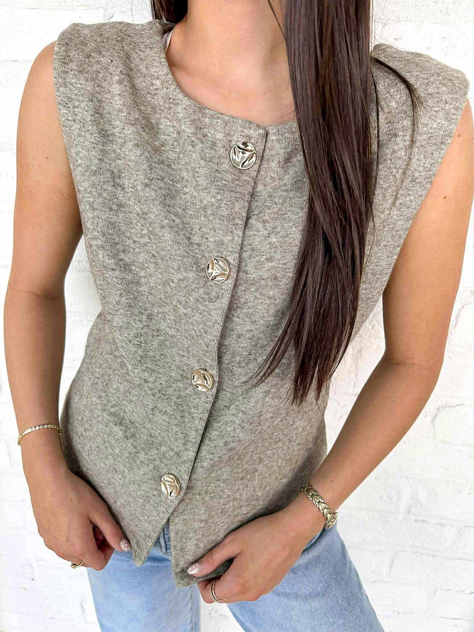 Elevate your look with the Heartbreak Anthem Top! This sleeveless knit vest is adorned with gold buttons, giving it a touch of elegance. Perfect for any occasion, this top adds a touch of sophistication to any outfit. Pair with your favorite bottoms for a stylish and polished look.