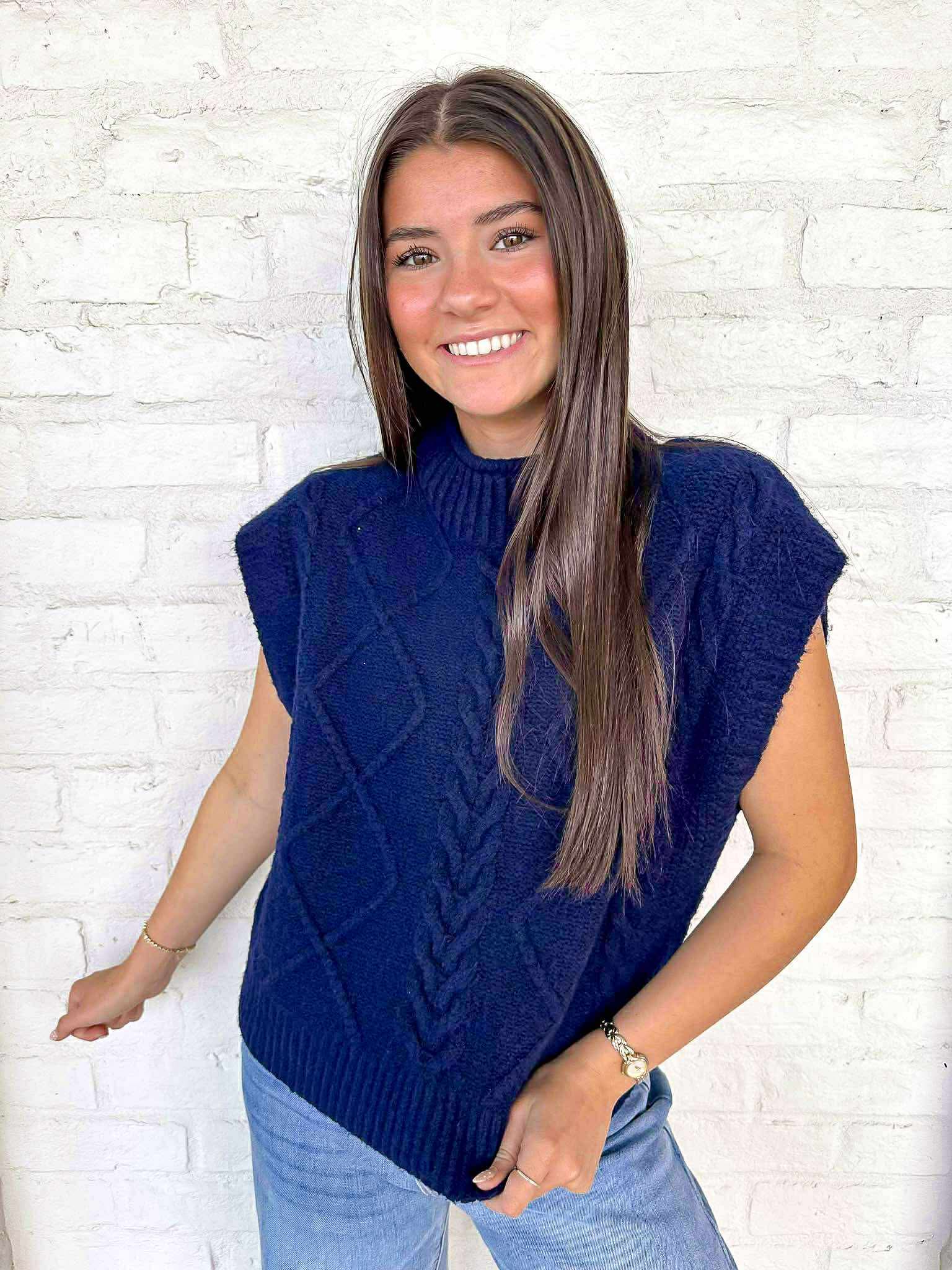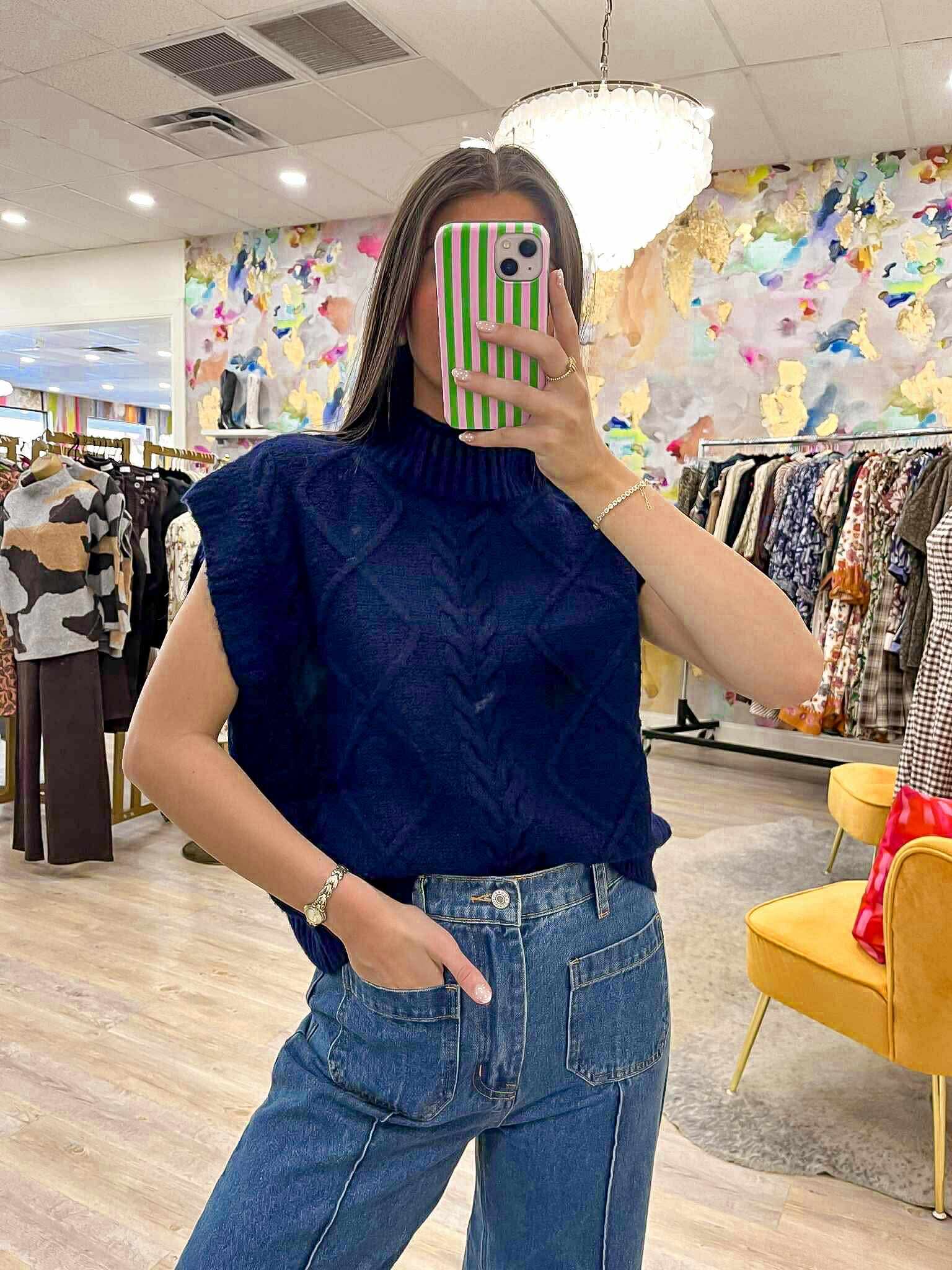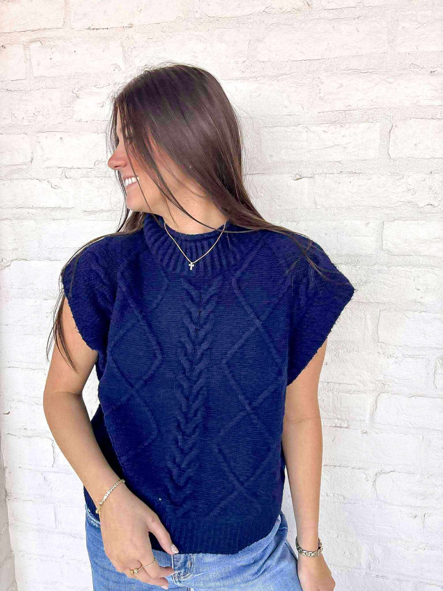 Elevate your style with our Notice Me Navy Top! This cozy sweater in a rich navy hue will keep you warm and stylish all season long. Perfect for any occasion, its versatile design allows you to dress it up or down. Get ready to turn heads in this must-have top!