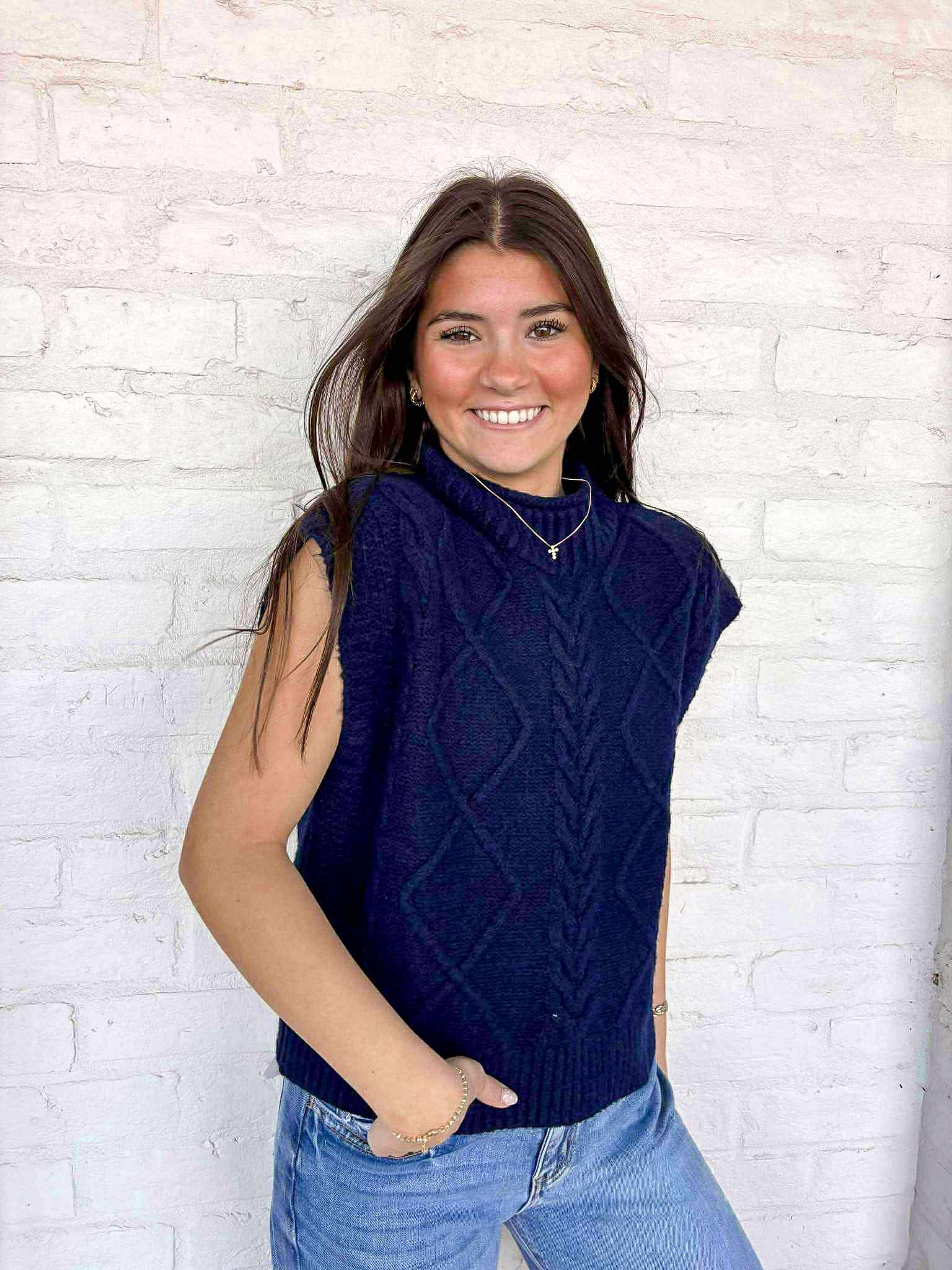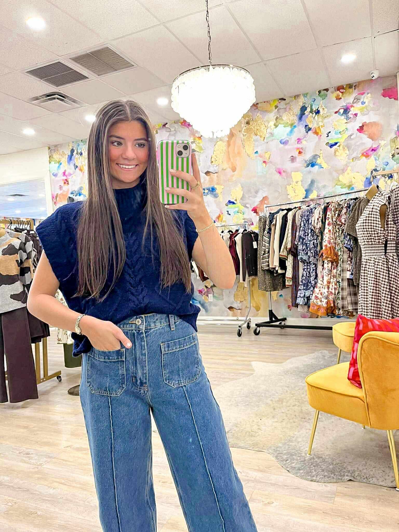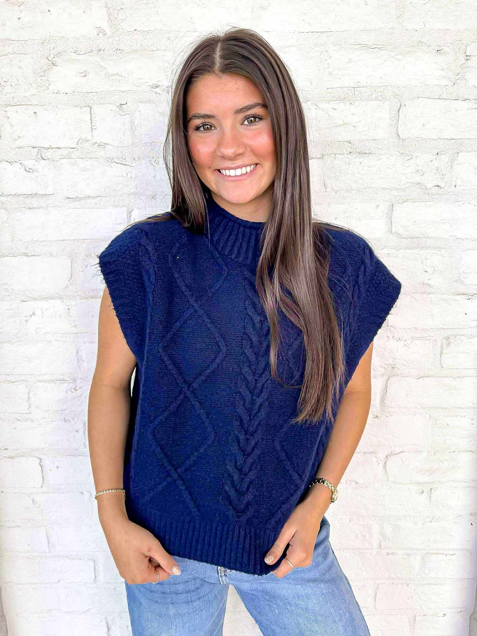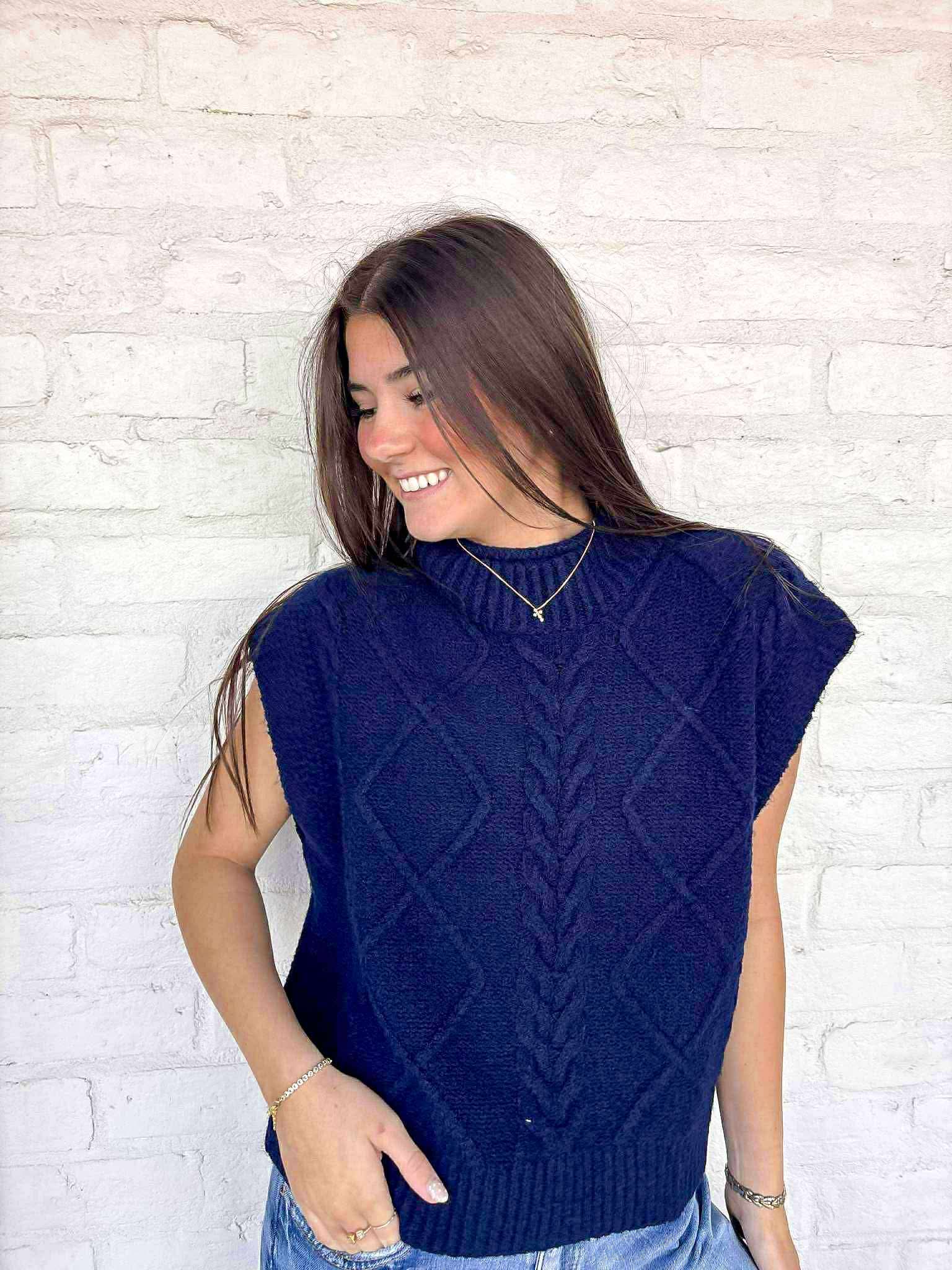 Elevate your style with our Notice Me Navy Top! This cozy sweater in a rich navy hue will keep you warm and stylish all season long. Perfect for any occasion, its versatile design allows you to dress it up or down. Get ready to turn heads in this must-have top!