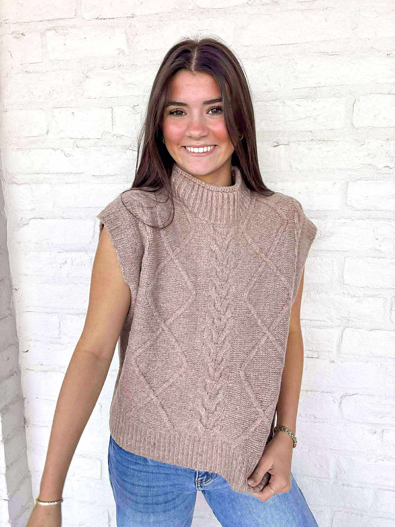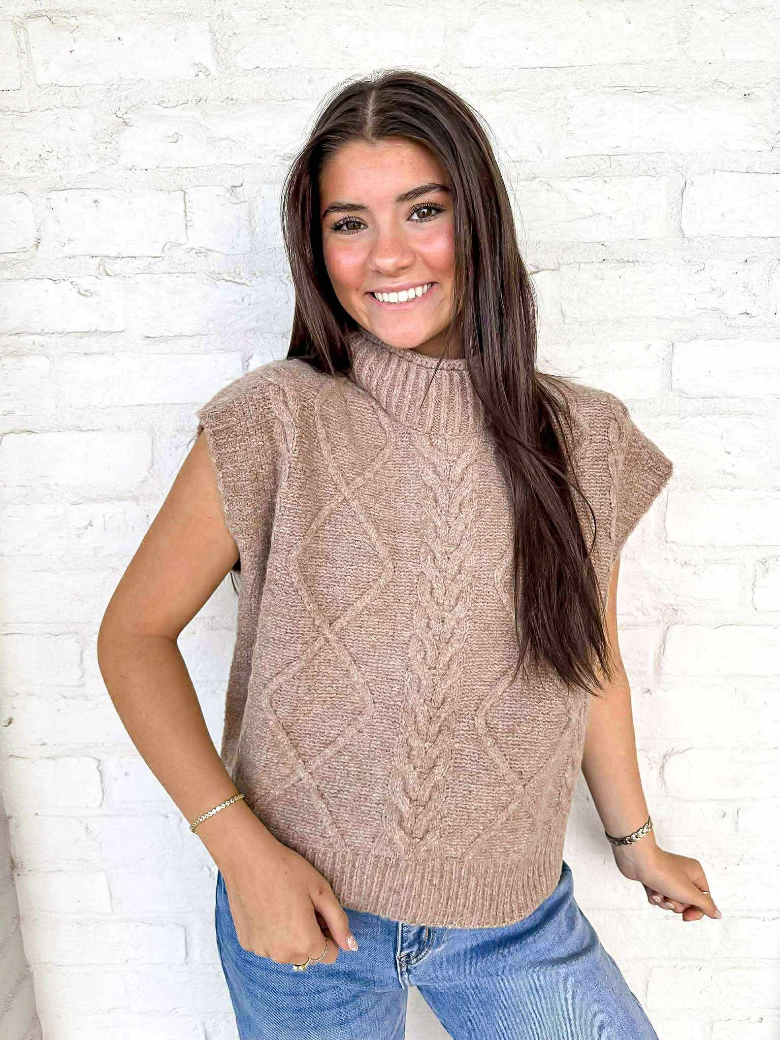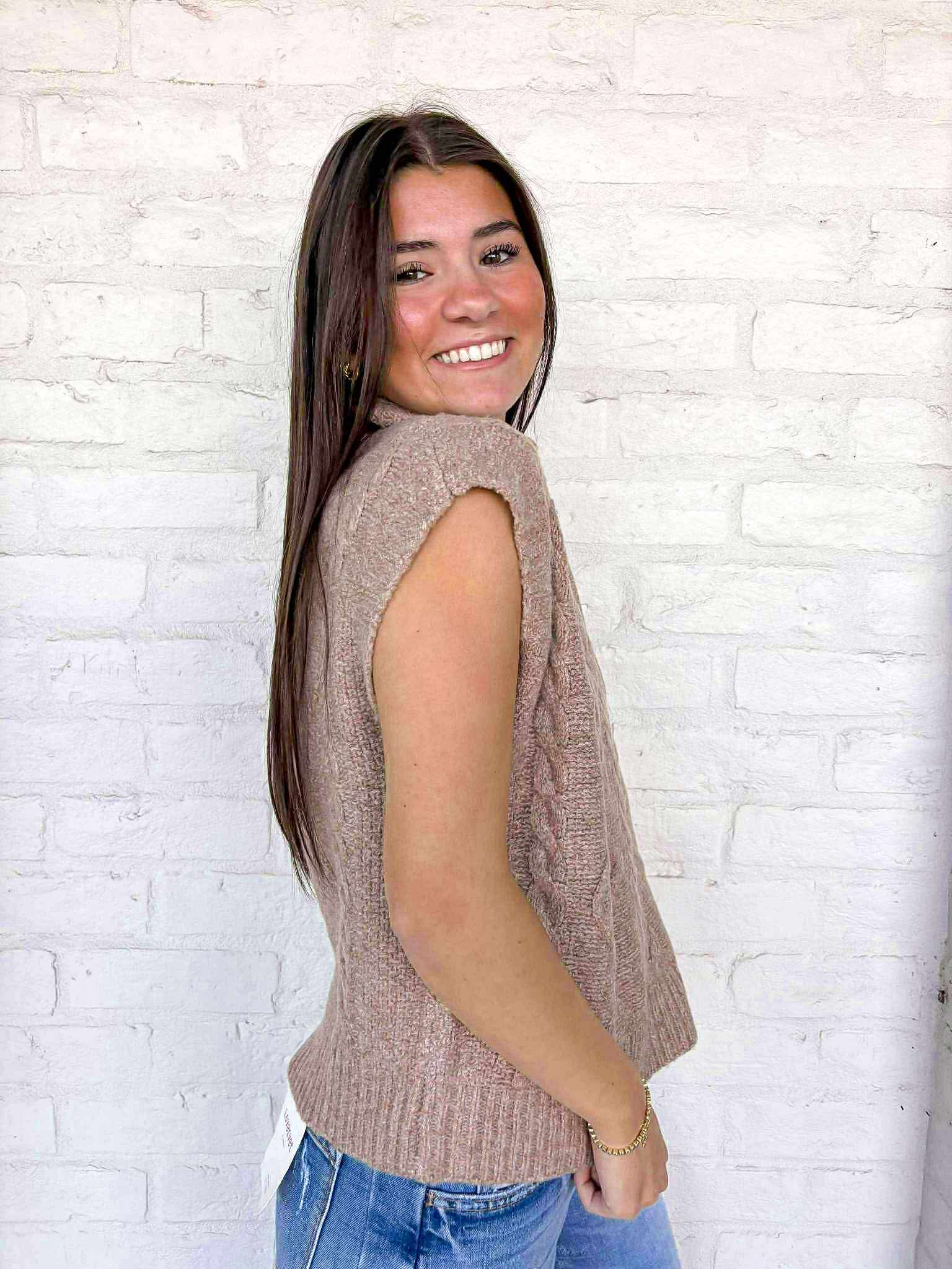 Introducing the Notice Me Oatmeal Top, perfect for adding a touch of warmth and style to any outfit. With its sleeveless design, this cozy sweater is versatile and can be easily layered for any occasion. Stay fashionable and comfortable with this must-have piece!