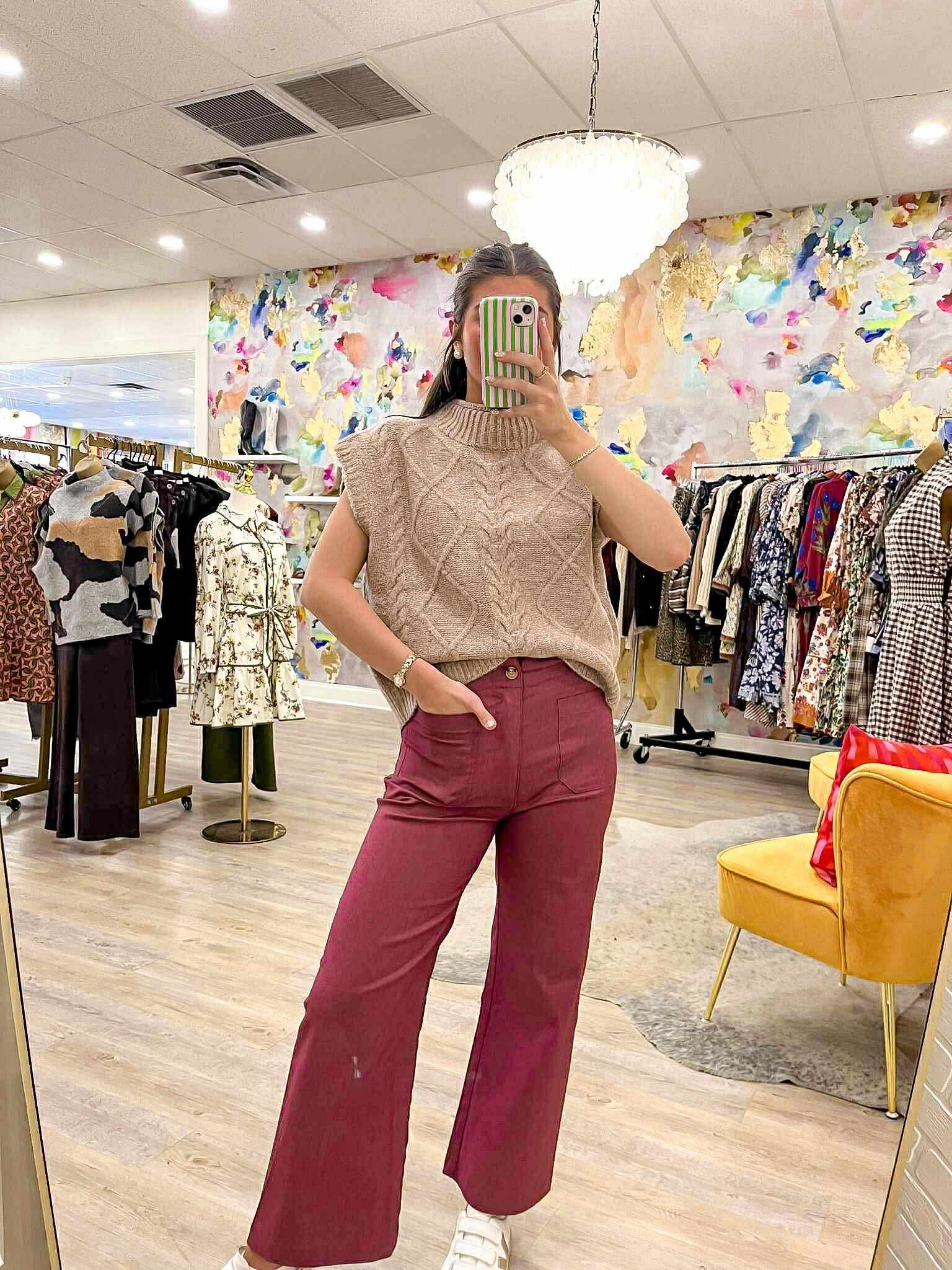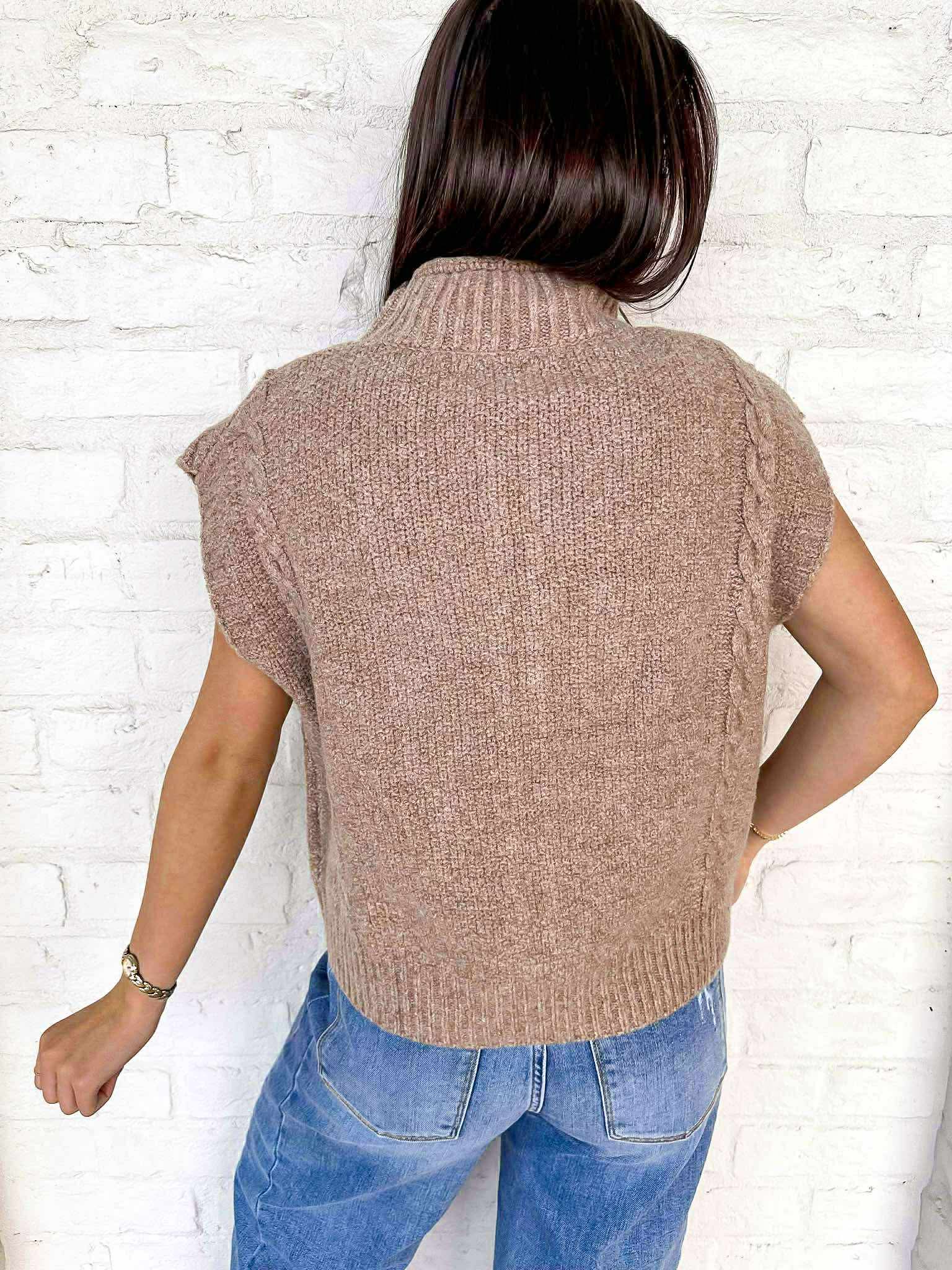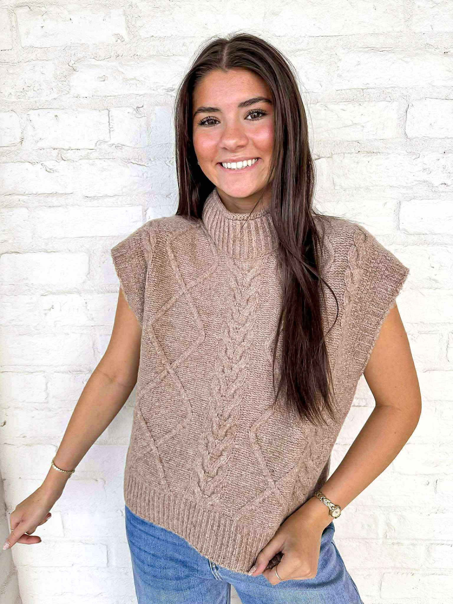 Introducing the Notice Me Oatmeal Top, perfect for adding a touch of warmth and style to any outfit. With its sleeveless design, this cozy sweater is versatile and can be easily layered for any occasion. Stay fashionable and comfortable with this must-have piece!