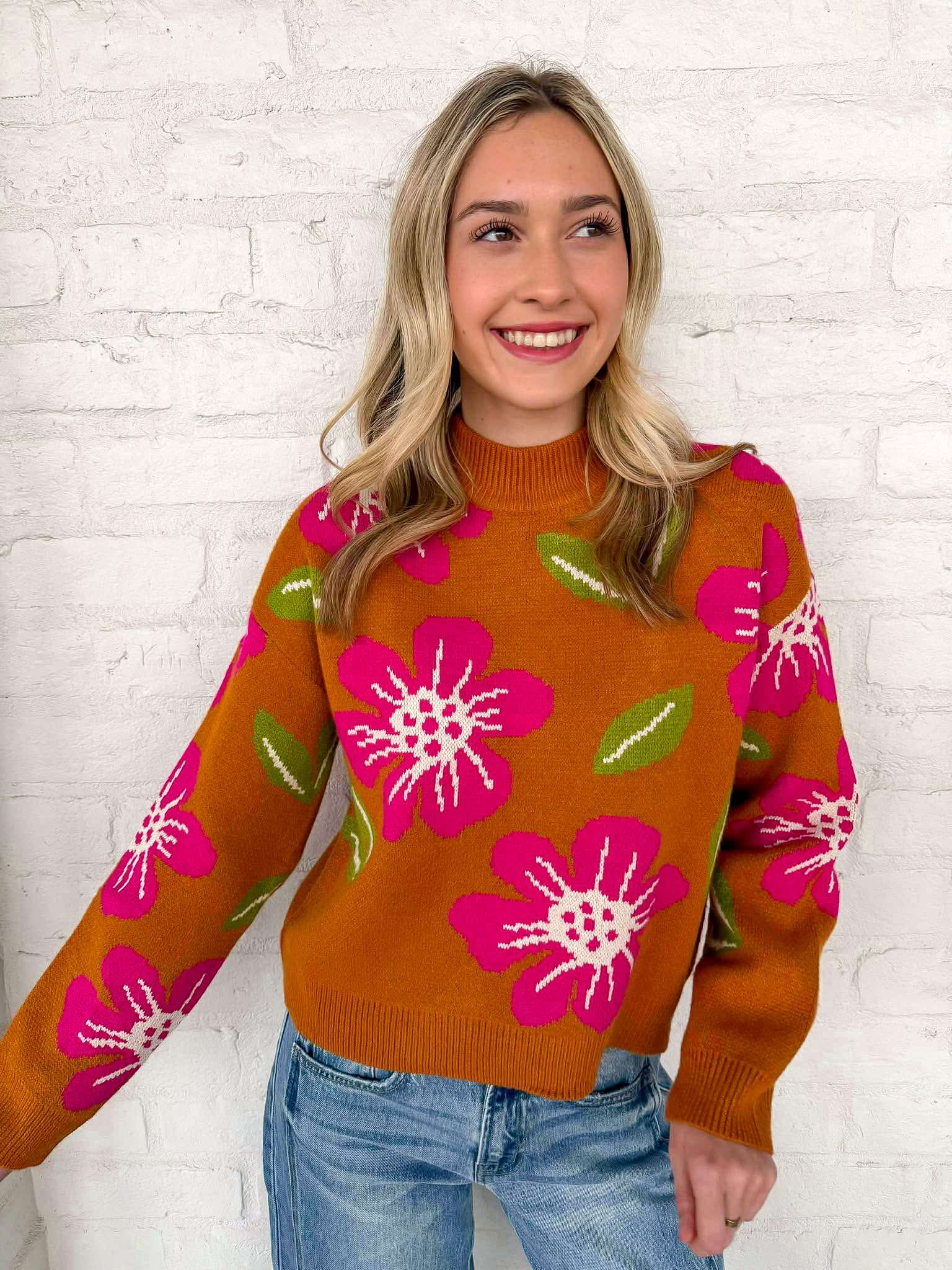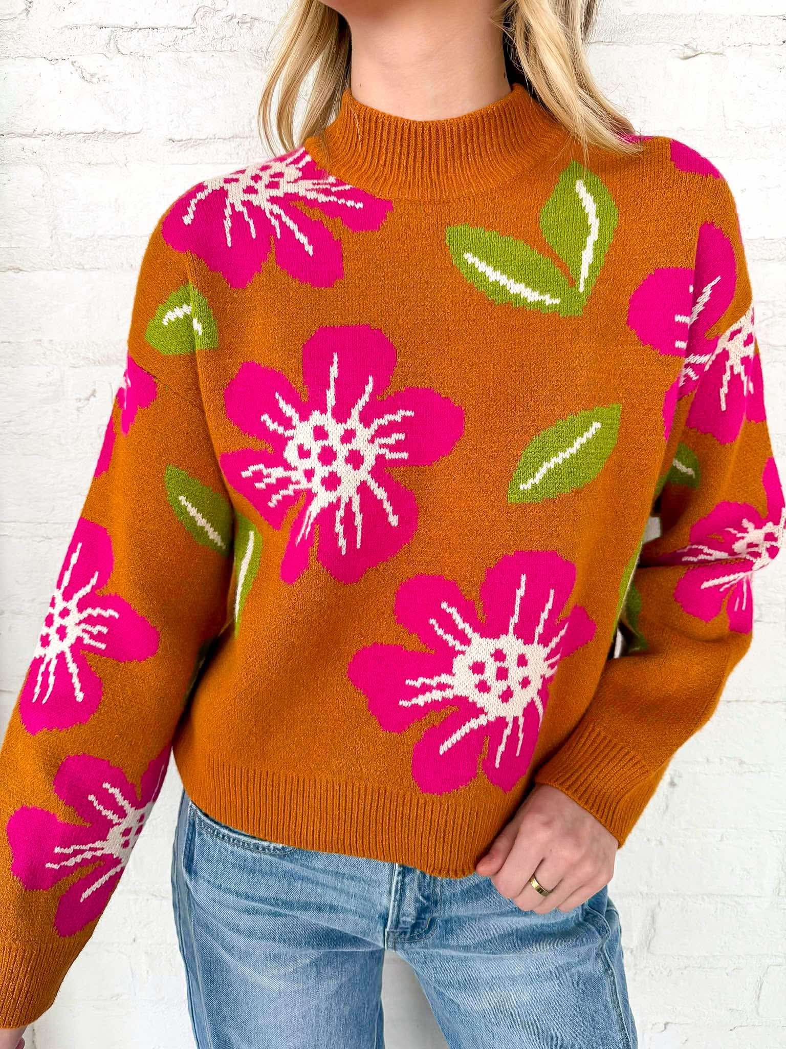 Elevate your wardrobe with the THML Finding The Match Mustard Top! This floral mock neck knit sweater combines warmth and style, offering a cozy fit that makes you feel confident and vibrant. Perfect for any occasion, its unique design will inspire compliments and brighten your day! Embrace the beauty of effortless fashion!