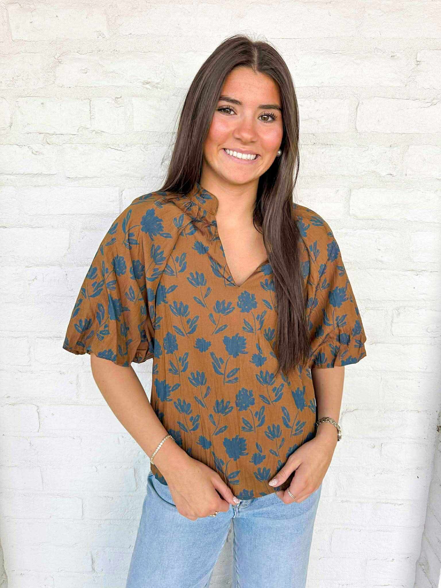 Experience the joy of spreading kindness with our THML Nice To Each Other Top. The striking puff sleeves and vibrant floral pattern on a flattering v neck design make it the perfect addition to your wardrobe. Be the change and look fabulous doing it!