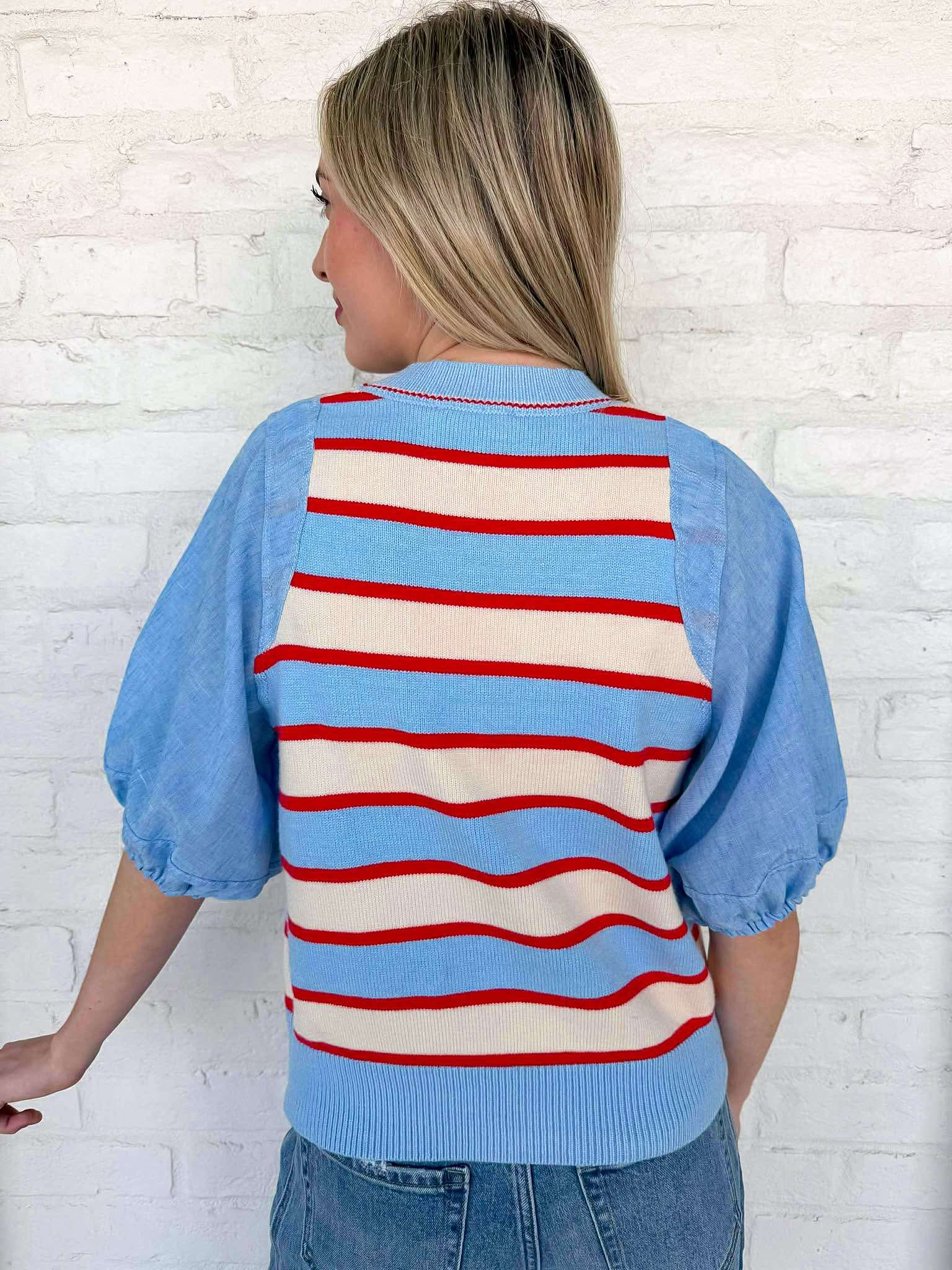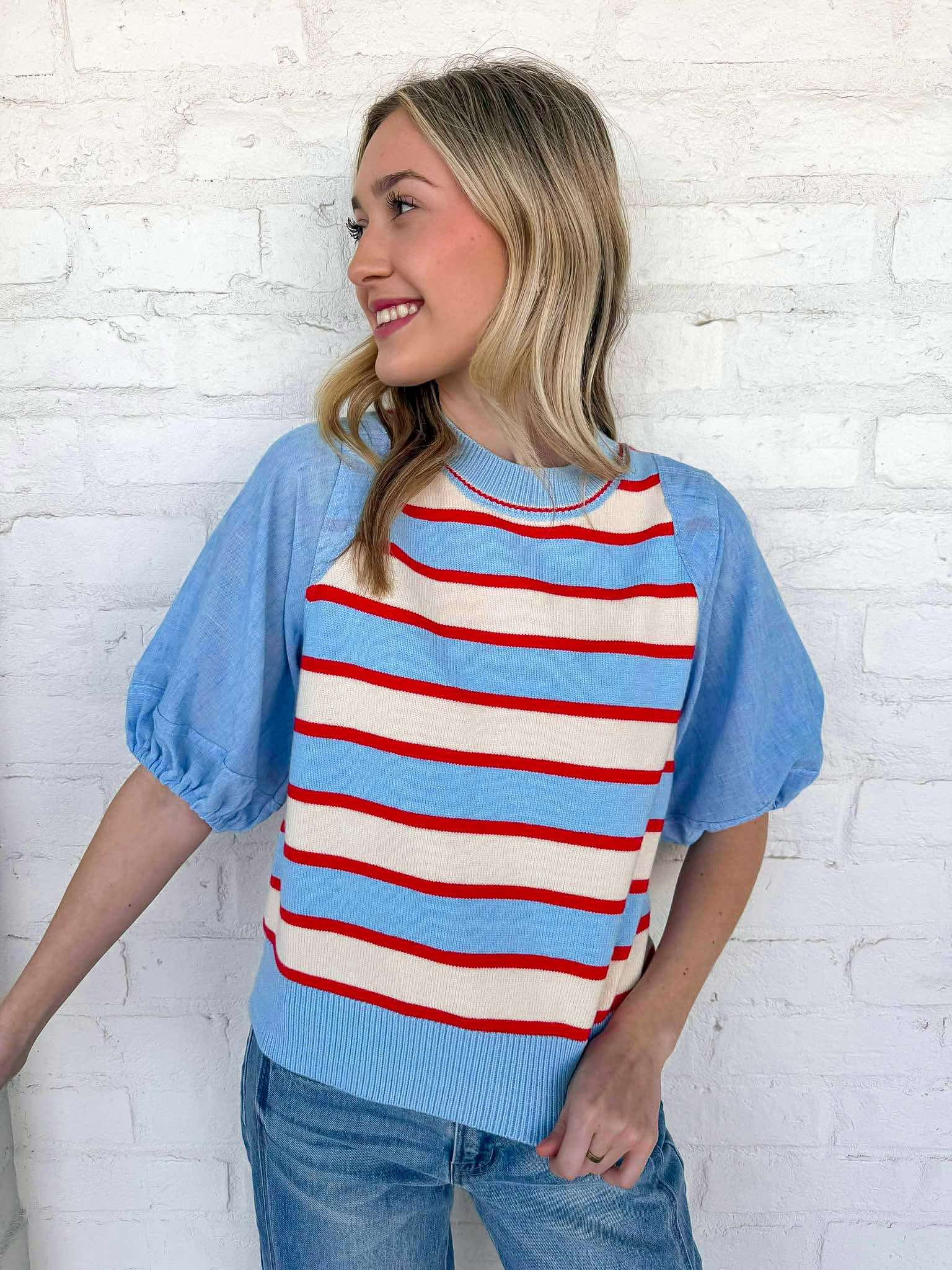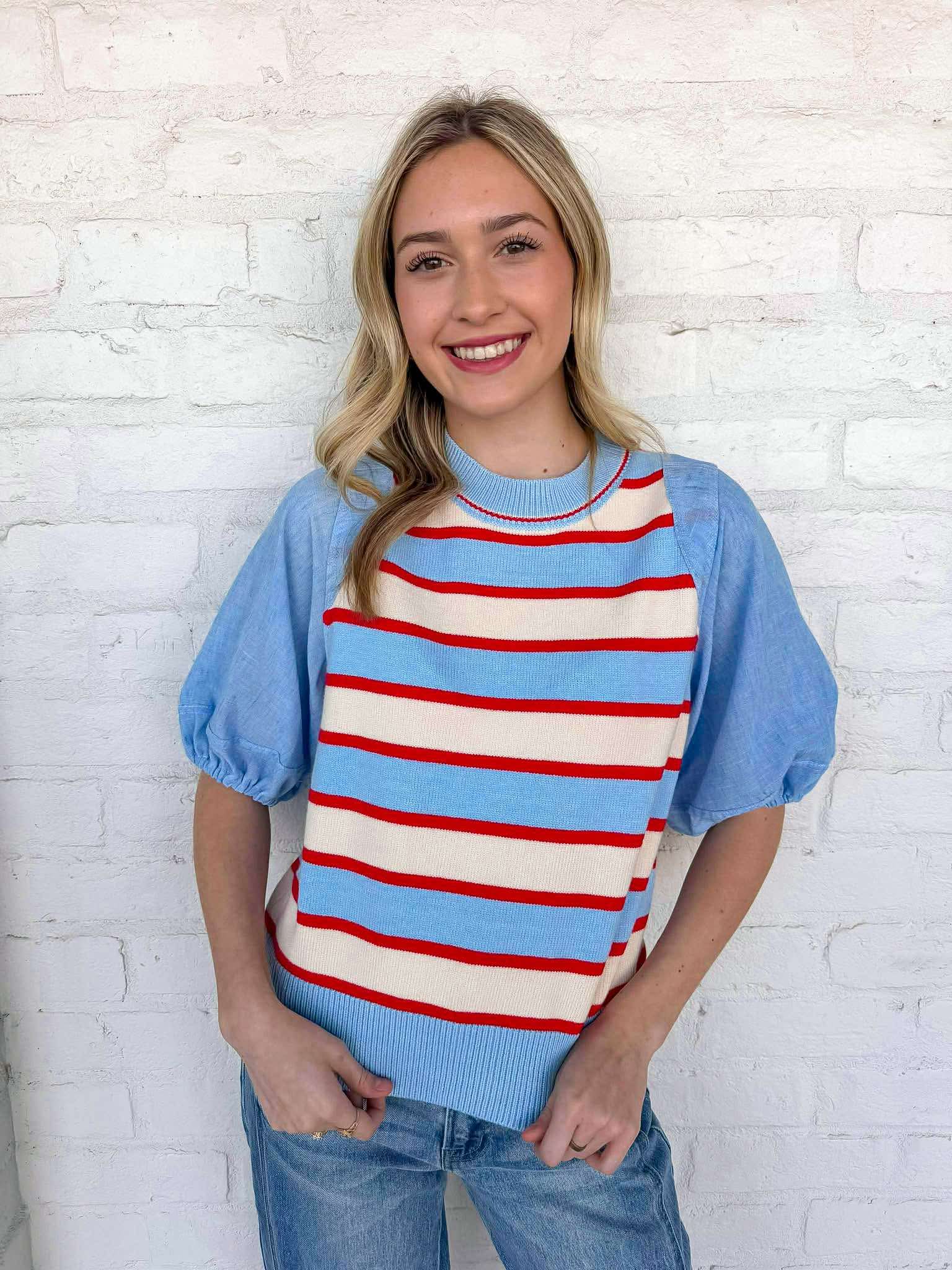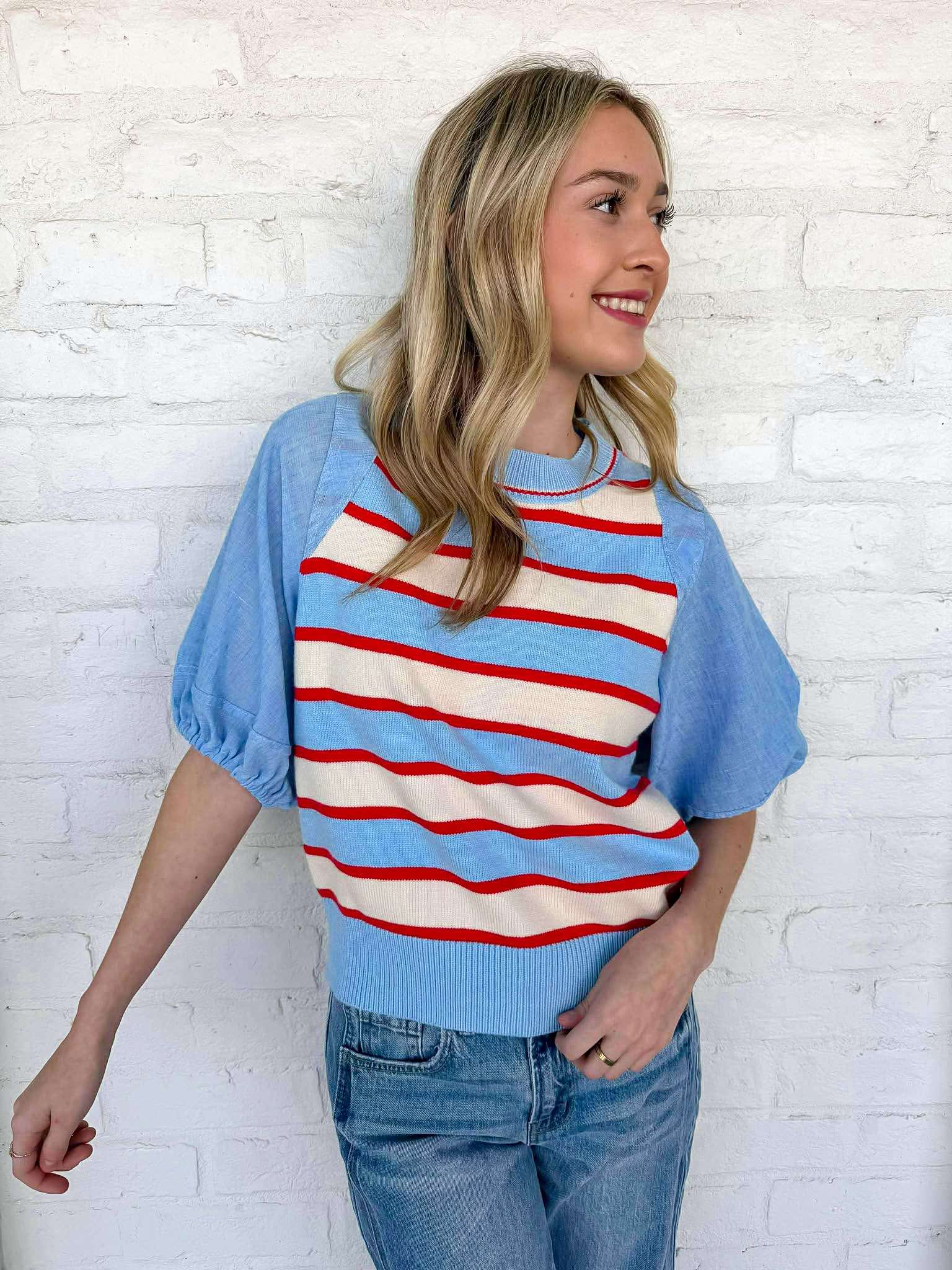 Elevate your wardrobe with the THML Starting Fresh Blue Top! Its charming puff sleeves and vibrant striped knit design create an effortlessly stylish look. Feel confident and fresh as you embrace the spring vibes this top brings. It's the perfect blend of comfort and statement-making flair!