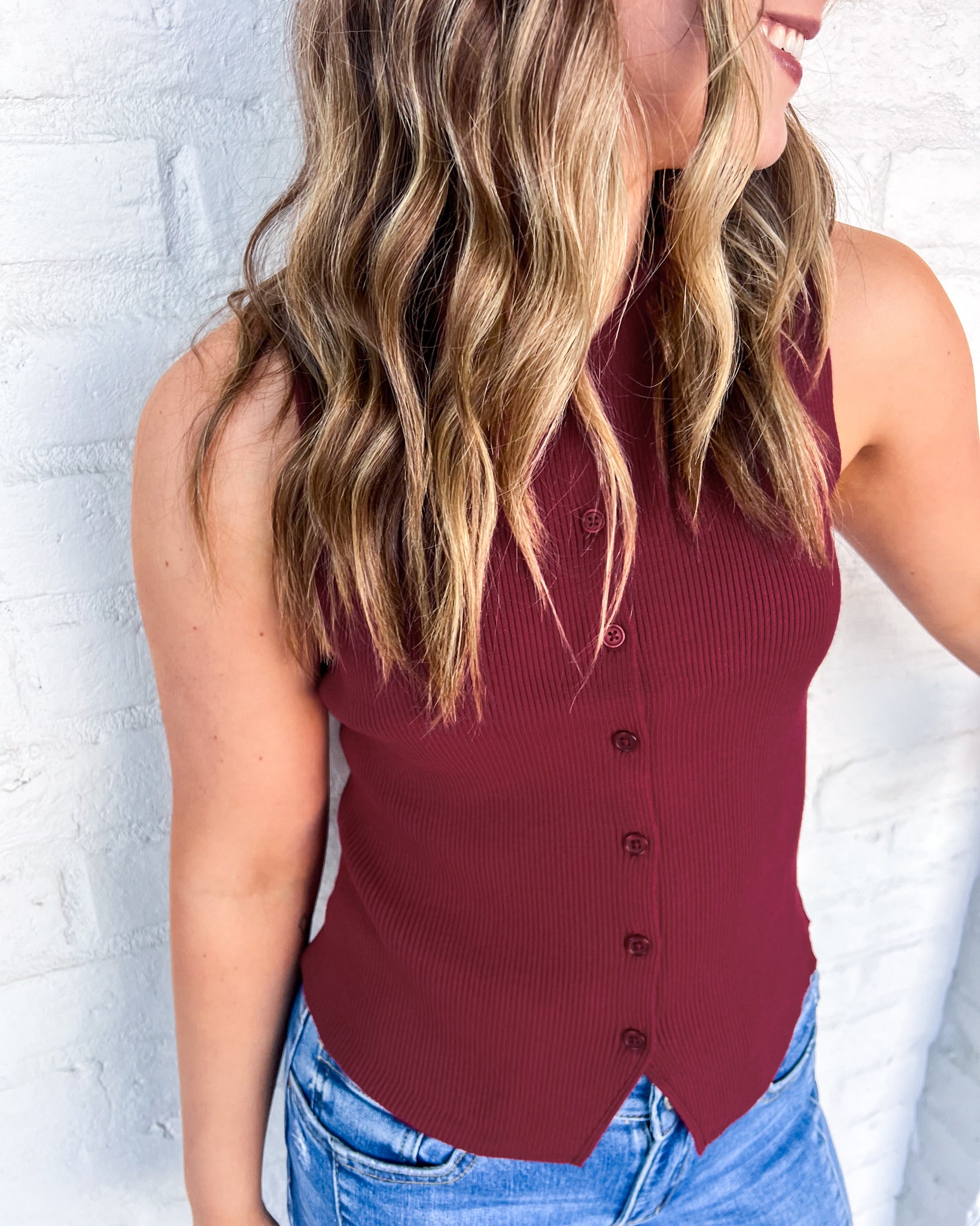 Elevate your wardrobe with our Chasing Dreams Top. This button-down cardigan vest top is crafted from cozy sweater knit and features a split front design. Experience comfort and style all in one, perfect for chasing all your dreams!