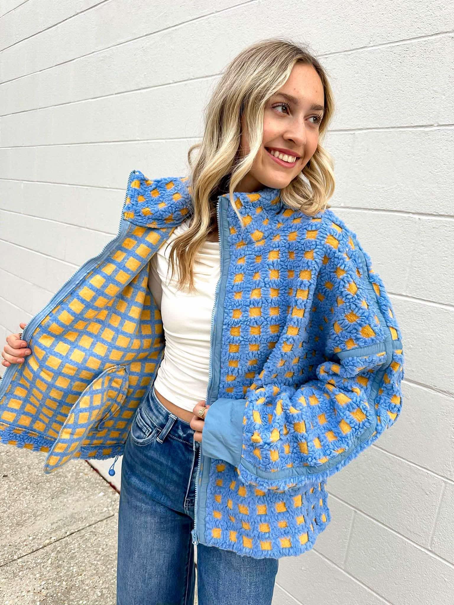 Stay stylish and mindful with our Check Your Actions Jacket! Made with checkered fabric, this jacket is perfect for those who value both fashion and being conscious of the choices they make. With our jacket, every action taken will be a check in the right direction.
