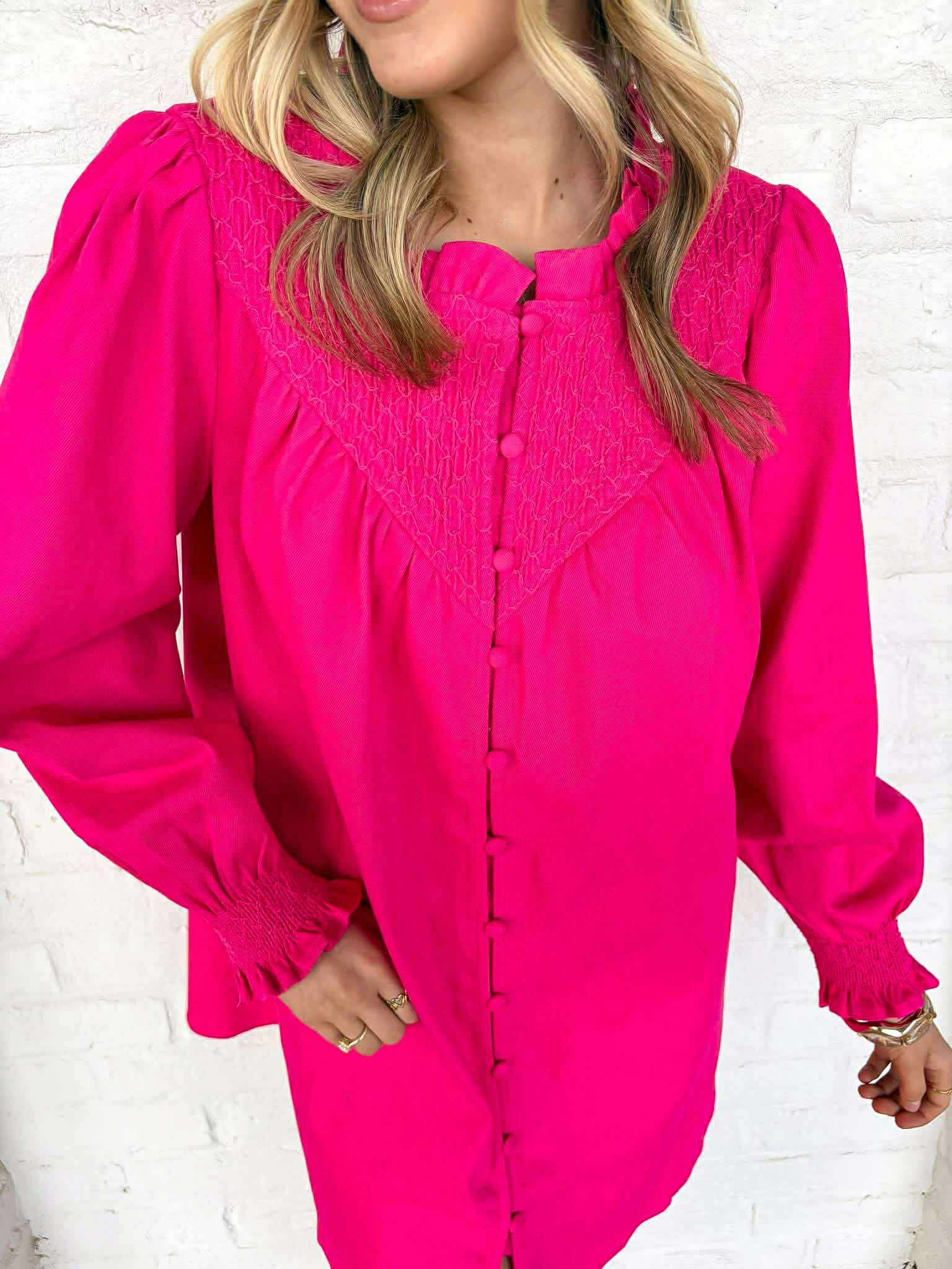 Experience effortless elegance with the Describe The Feeling Fuchsia Dress. This stunning dress is both stylish and comfortable, making it perfect for any occasion. Its vibrant fuchsia color is sure to turn heads, while its flattering design will make you feel confident and beautiful. Elevate your wardrobe with this must-have dress!