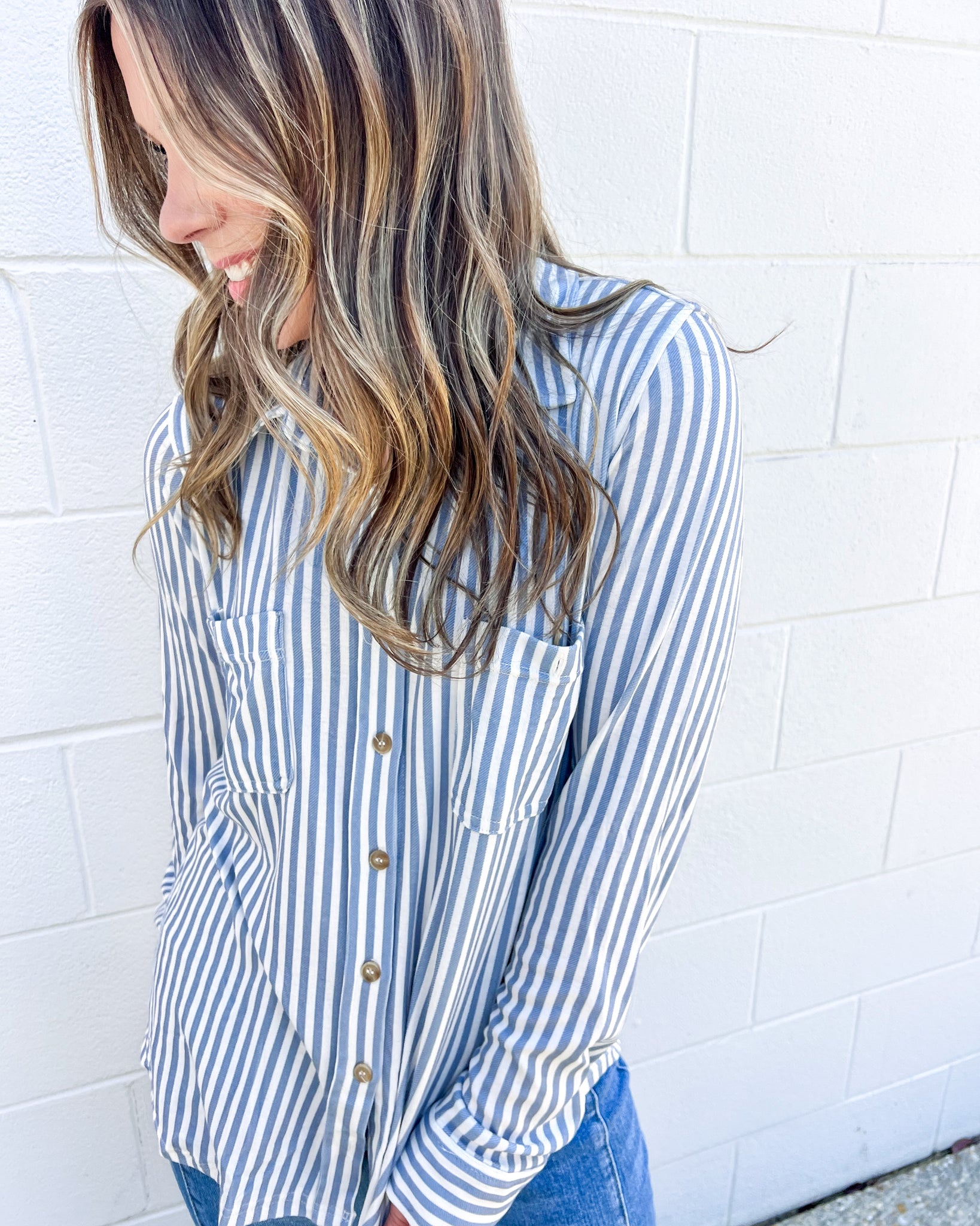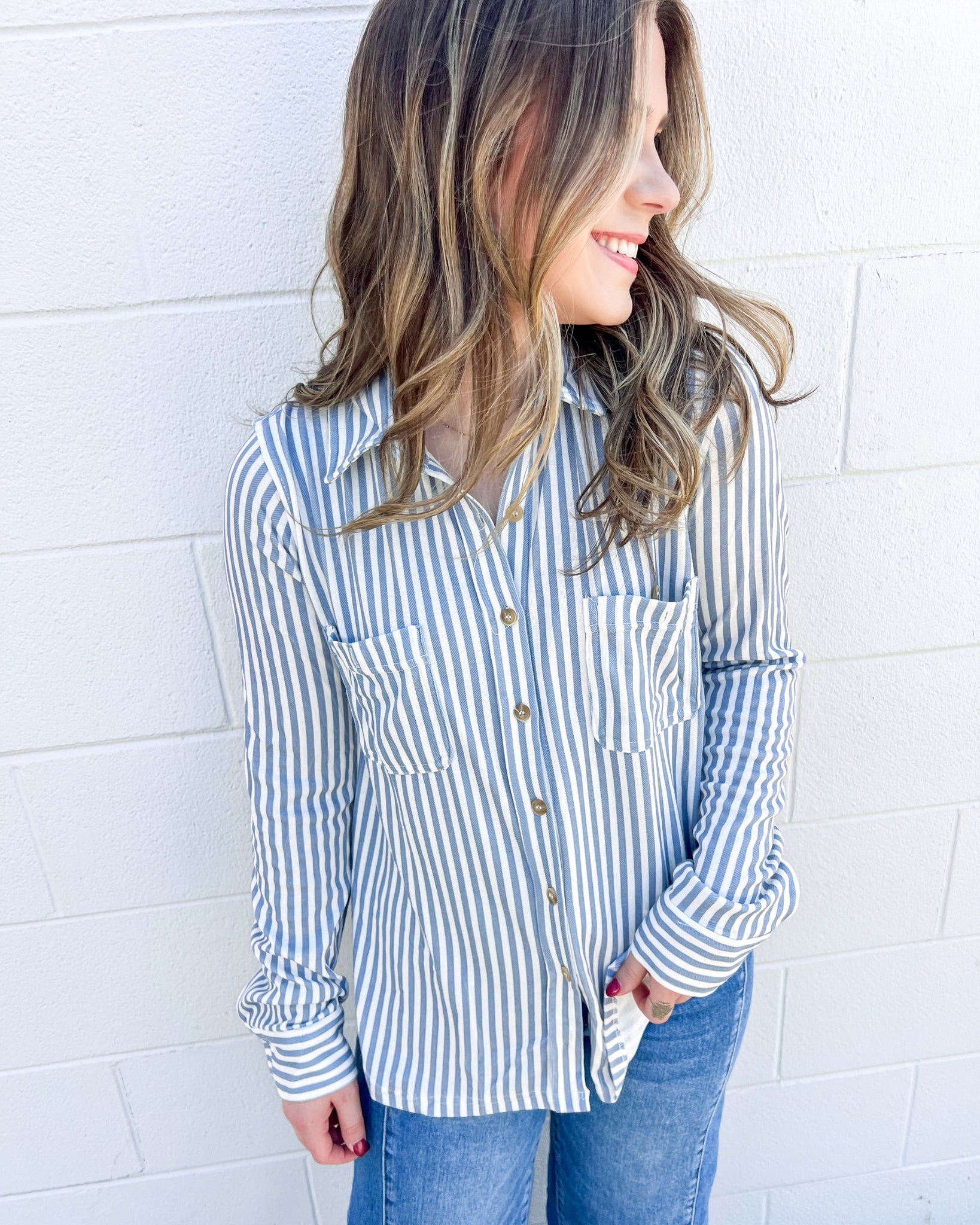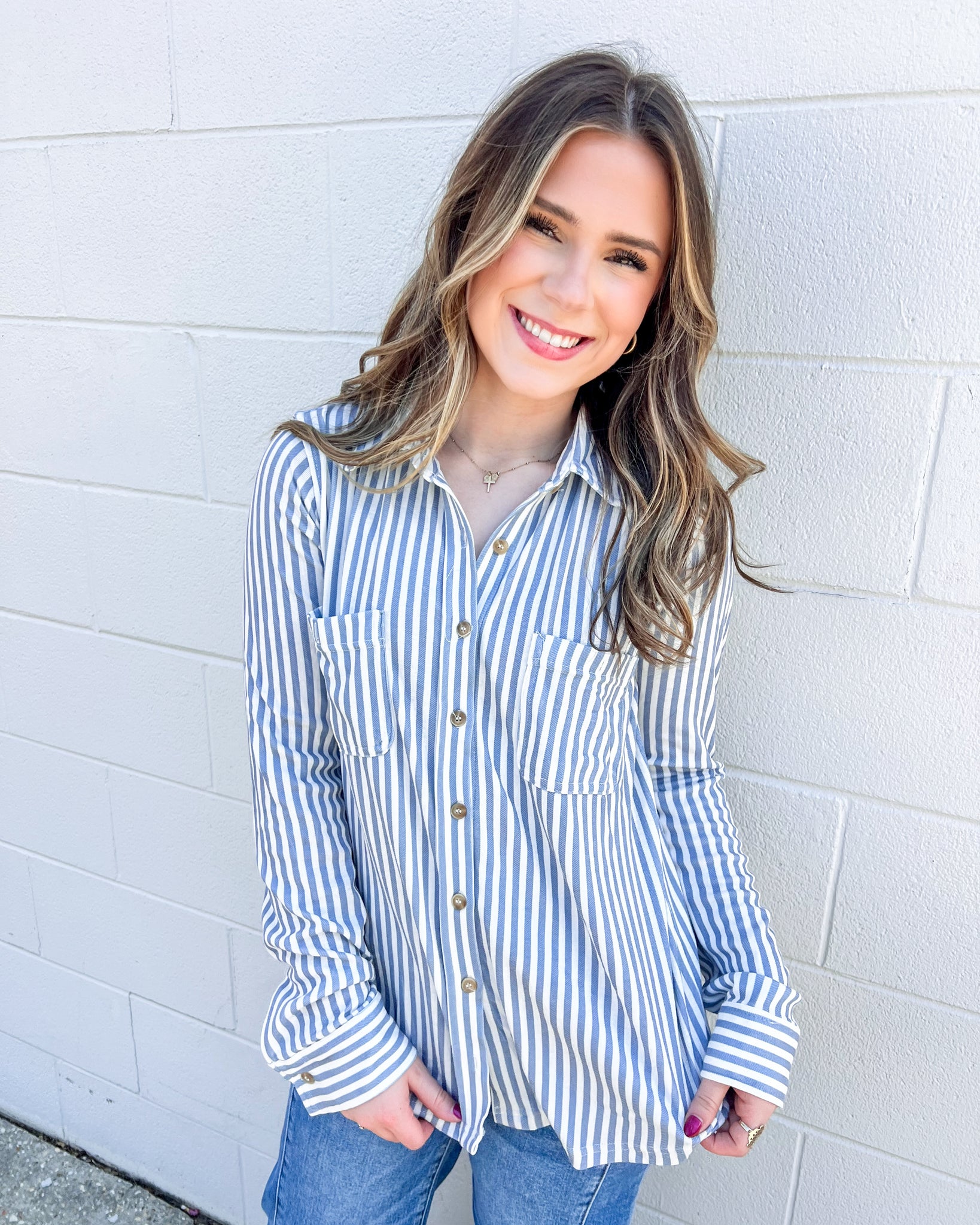 Effortlessly elevate your style with our Got The Best Button Down Top! Featuring a classic striped collared design and long sleeves, this shirt is perfect for any occasion. Stay effortlessly chic and comfortable with this must-have addition to your wardrobe!