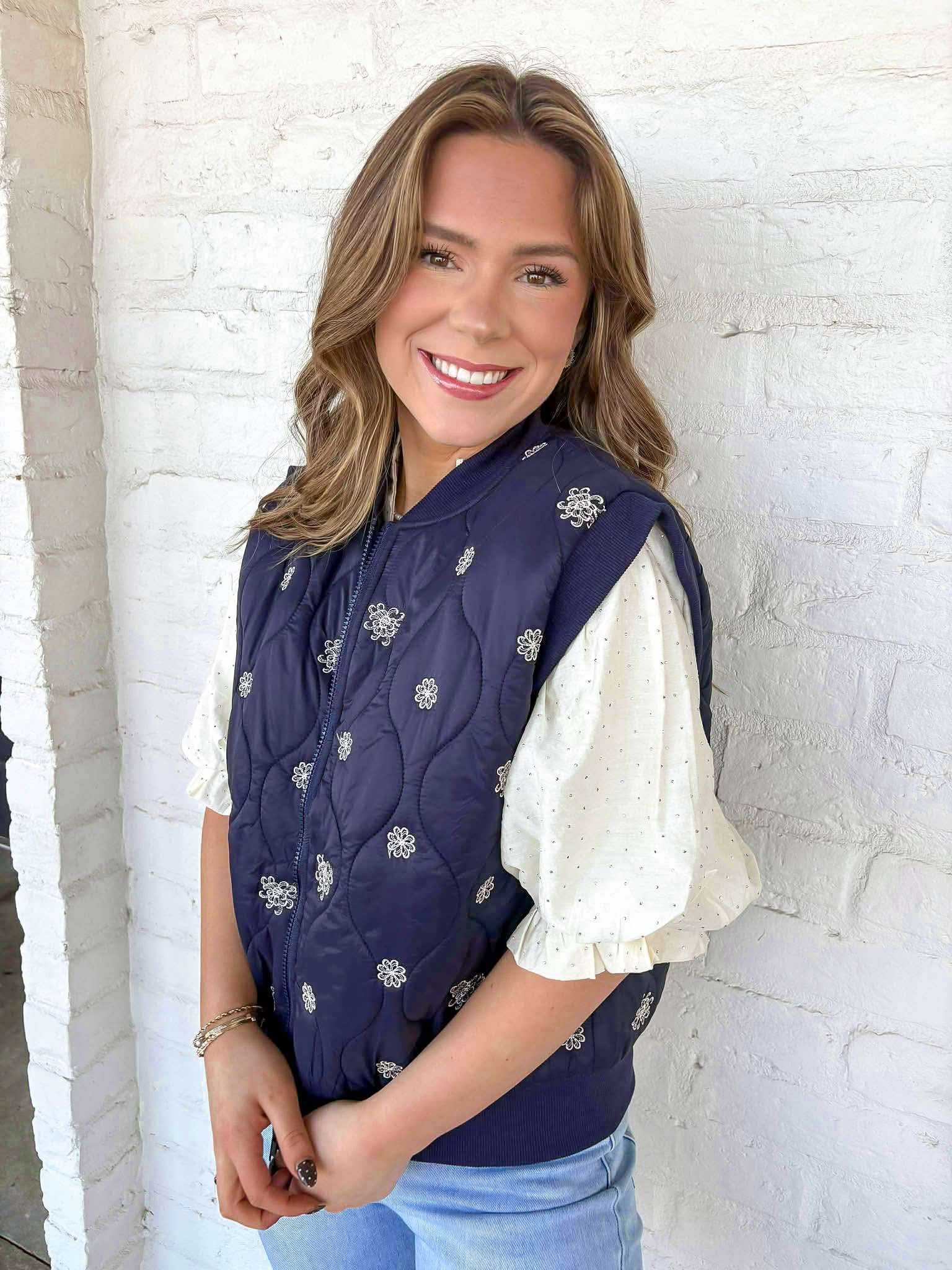 Wrap yourself in style and warmth with our Keep Me Warm Navy Vests! Featuring a stunning floral design, these vests are perfect for adding a touch of elegance to any outfit while keeping you cozy on chilly days. Elevate your wardrobe with this must-have accessory.