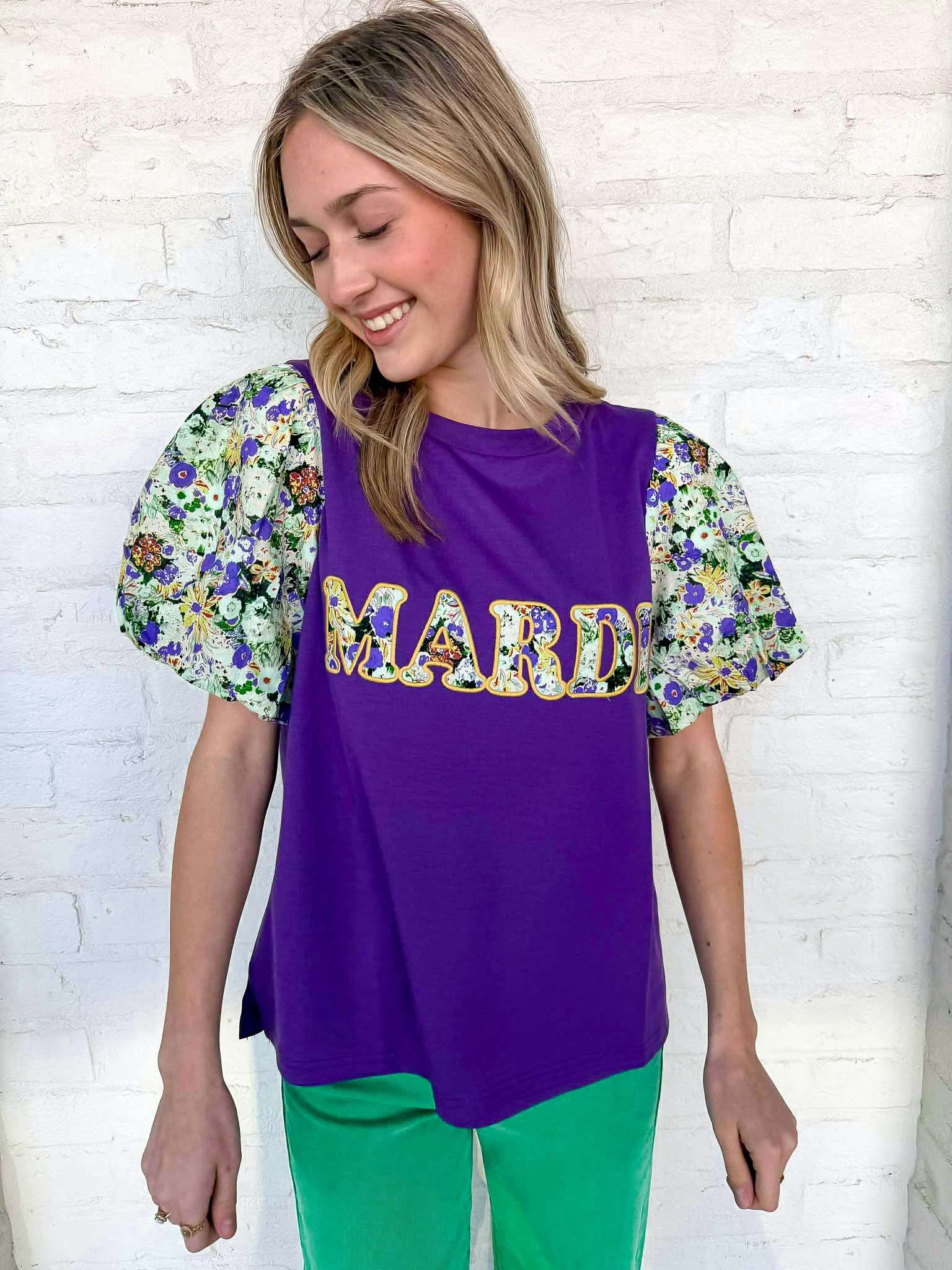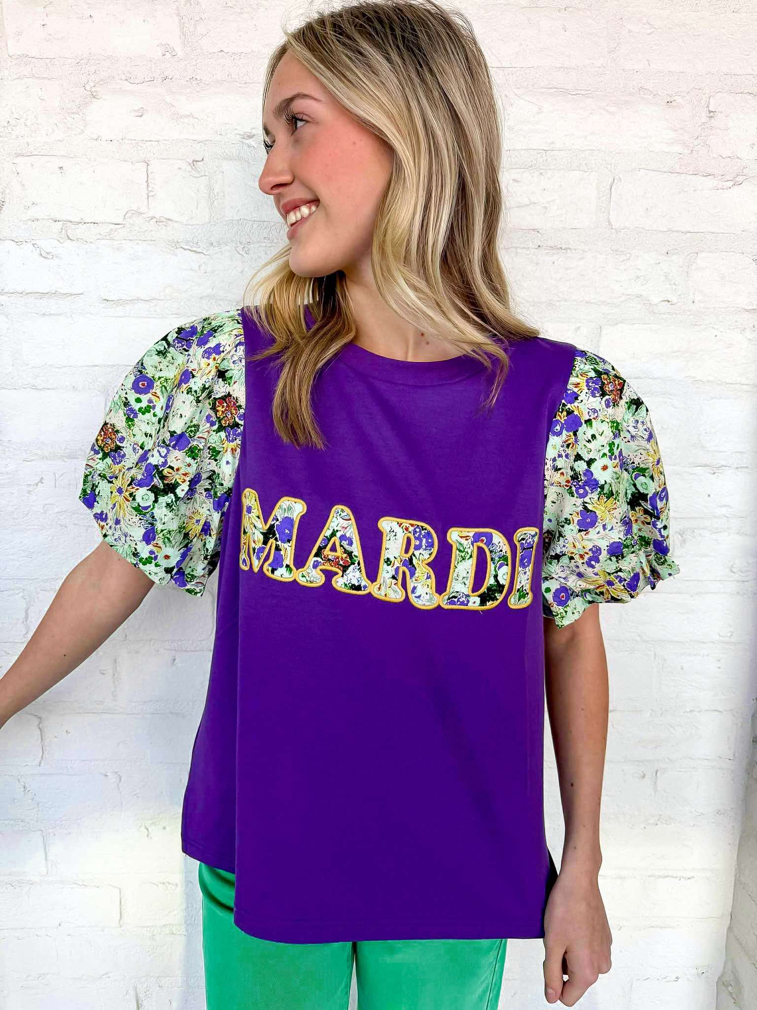 Elevate your wardrobe with the Mardi Gras Patch Bubble Sleeve Top! Its eye-catching bubble sleeves add a playful touch, making you feel confident and vibrant. Perfect for any celebration or casual outing, this top is your go-to for effortless style that radiates joy and excitement. Embrace the festivity!