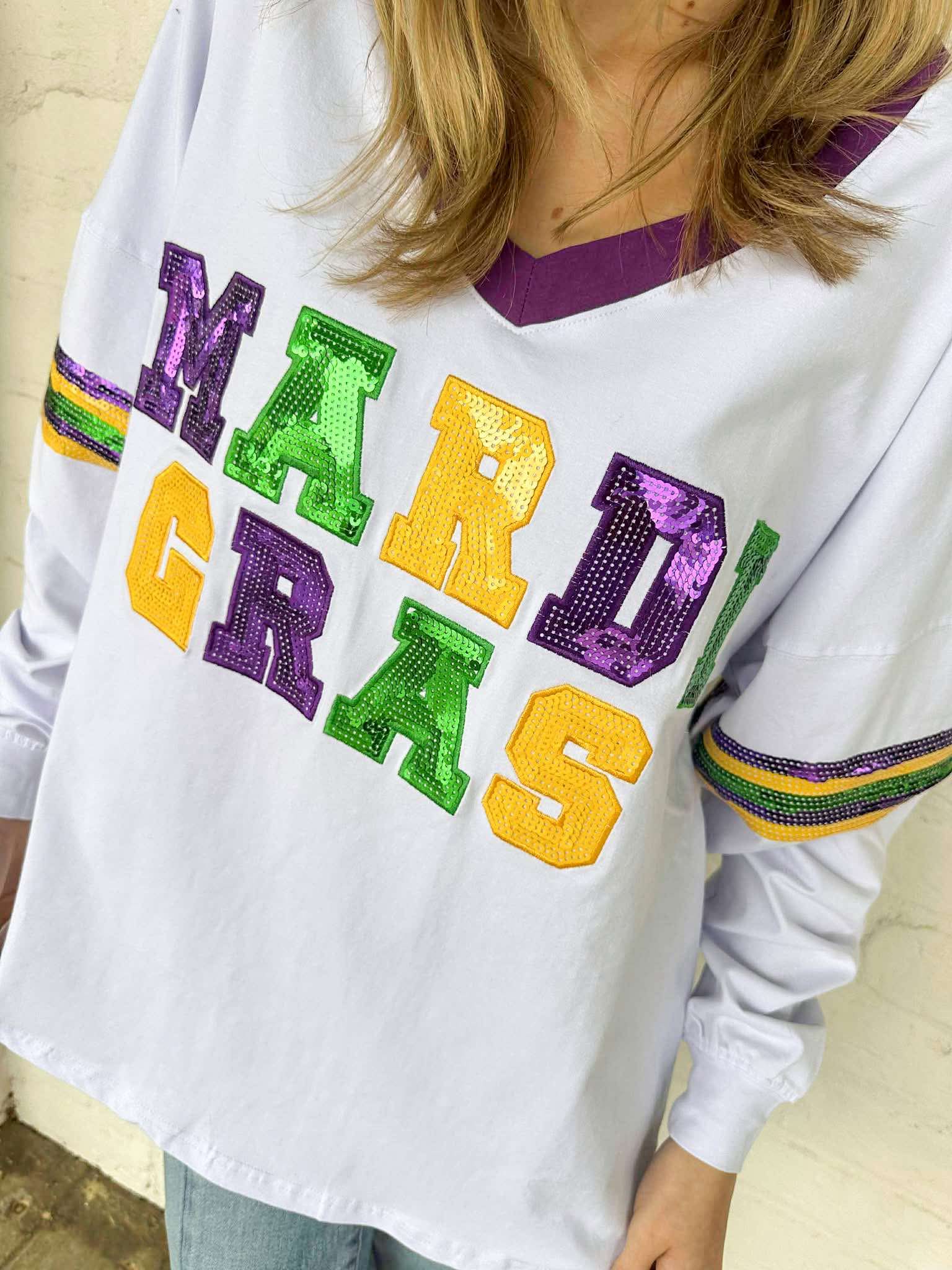 Step into the festive spirit with our Mardi Gras Sequin Long Sleeve Shirts! Adorned with shimmering sequins, these vibrant shirts bring an electrifying flair to your celebration. The long sleeves ensure comfort and style, making you feel as fantastic as you look. Celebrate in style!