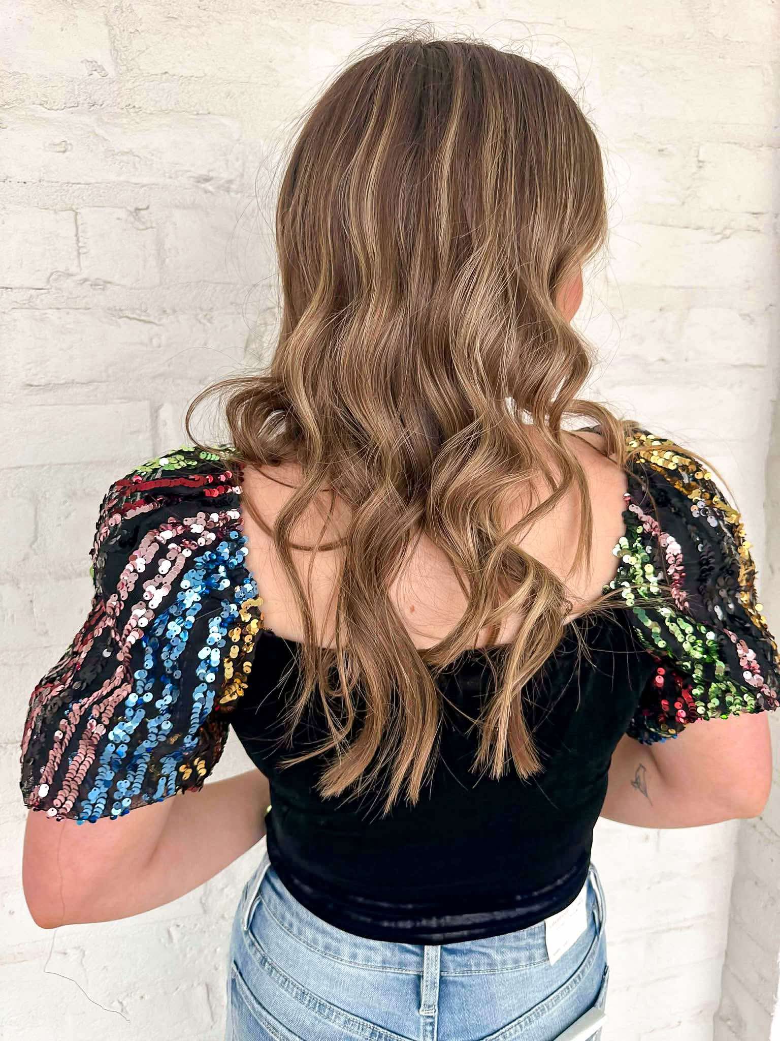 Step into the spotlight with our New Goals Ahead Multi Sequin Bodysuit! Featuring a stunning array of colors and a chic square neckline, this bodysuit is sure to make a statement. Perfect for adding a touch of glamour and confidence to any outfit. Embrace the power of self-expression and stand out with our bodysuit.