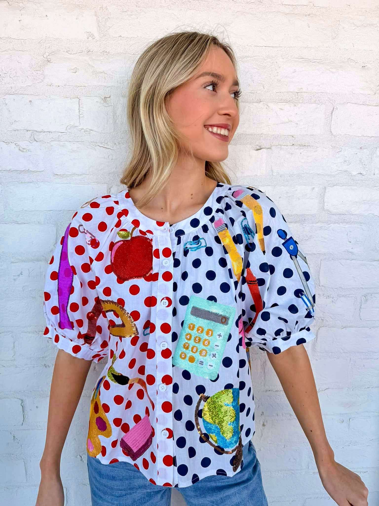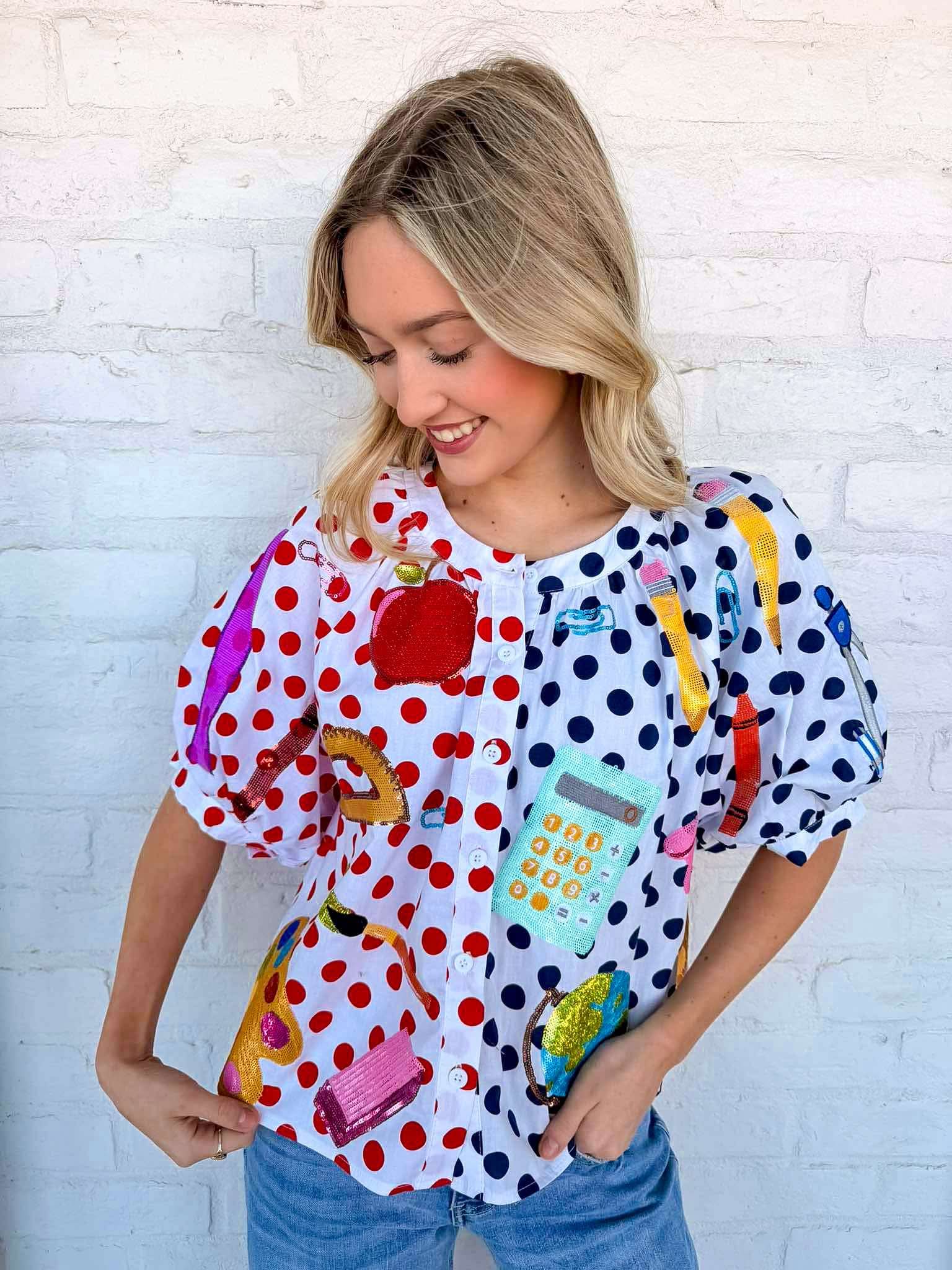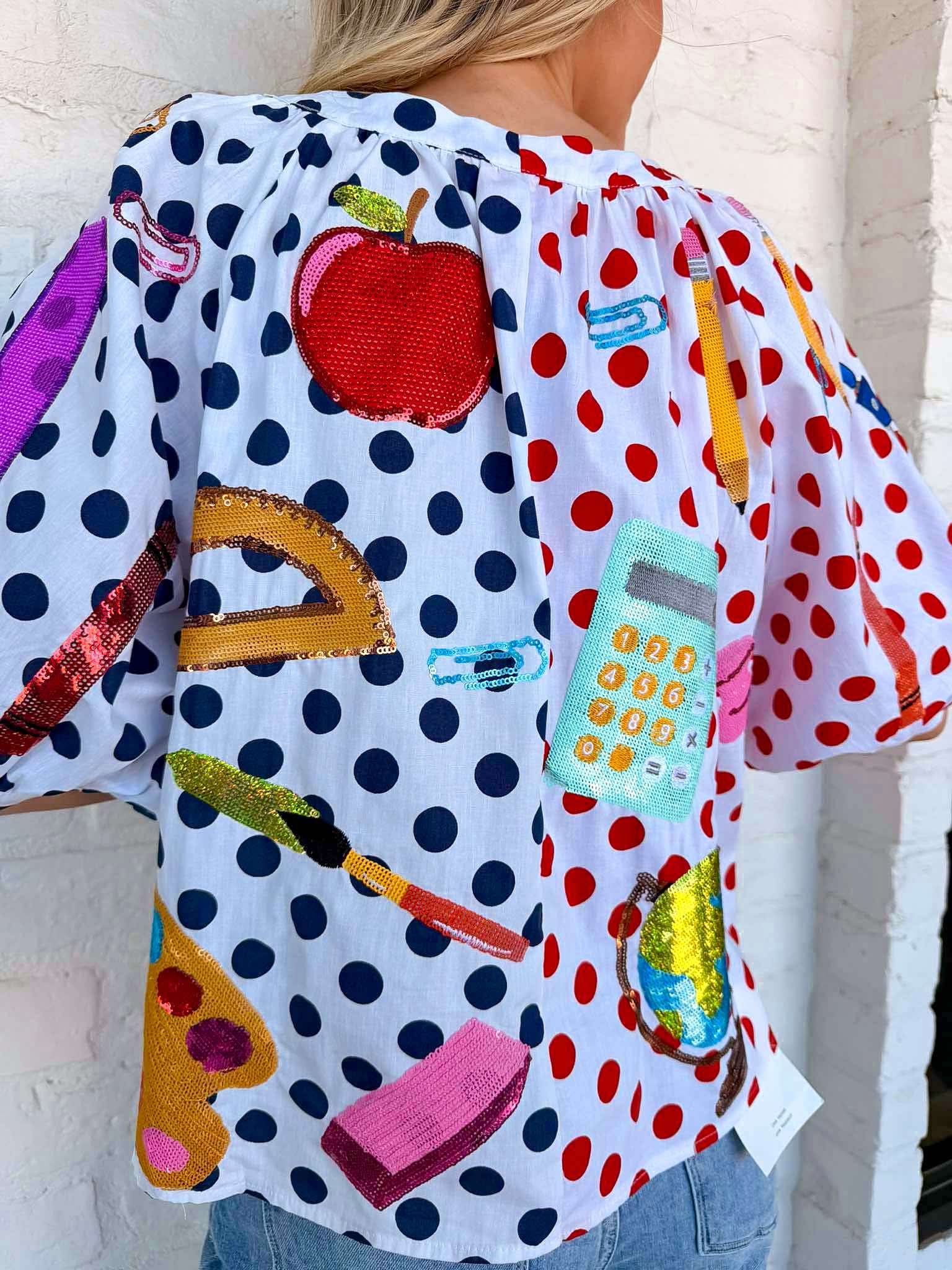Queen Of Sparkles Color-block Polka Dot Teacher Icon Top