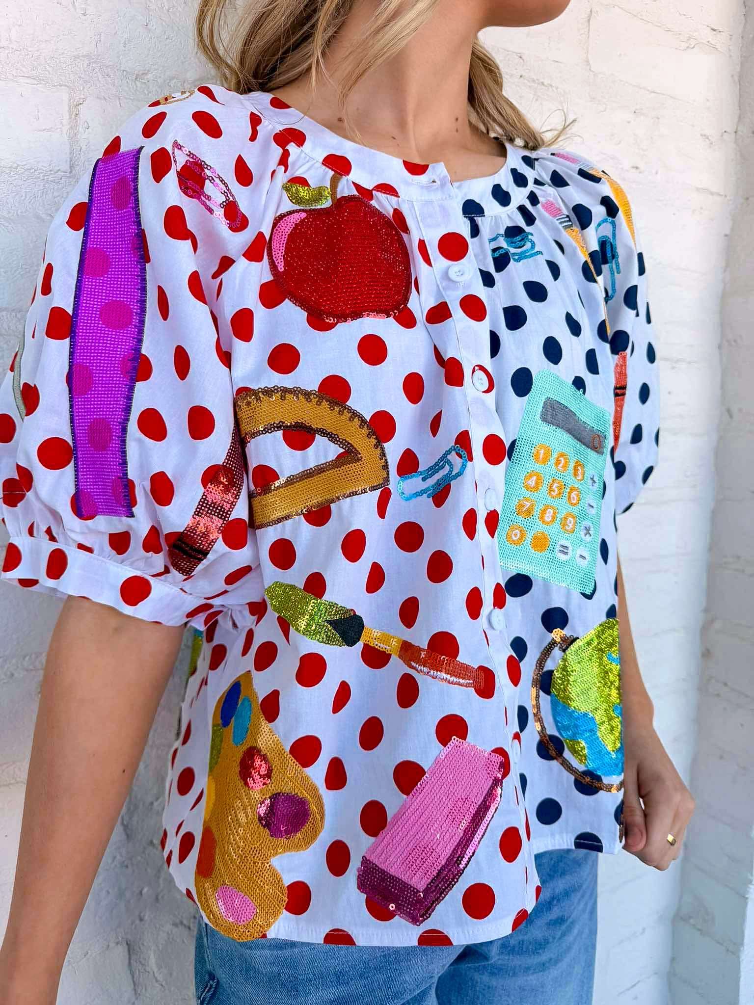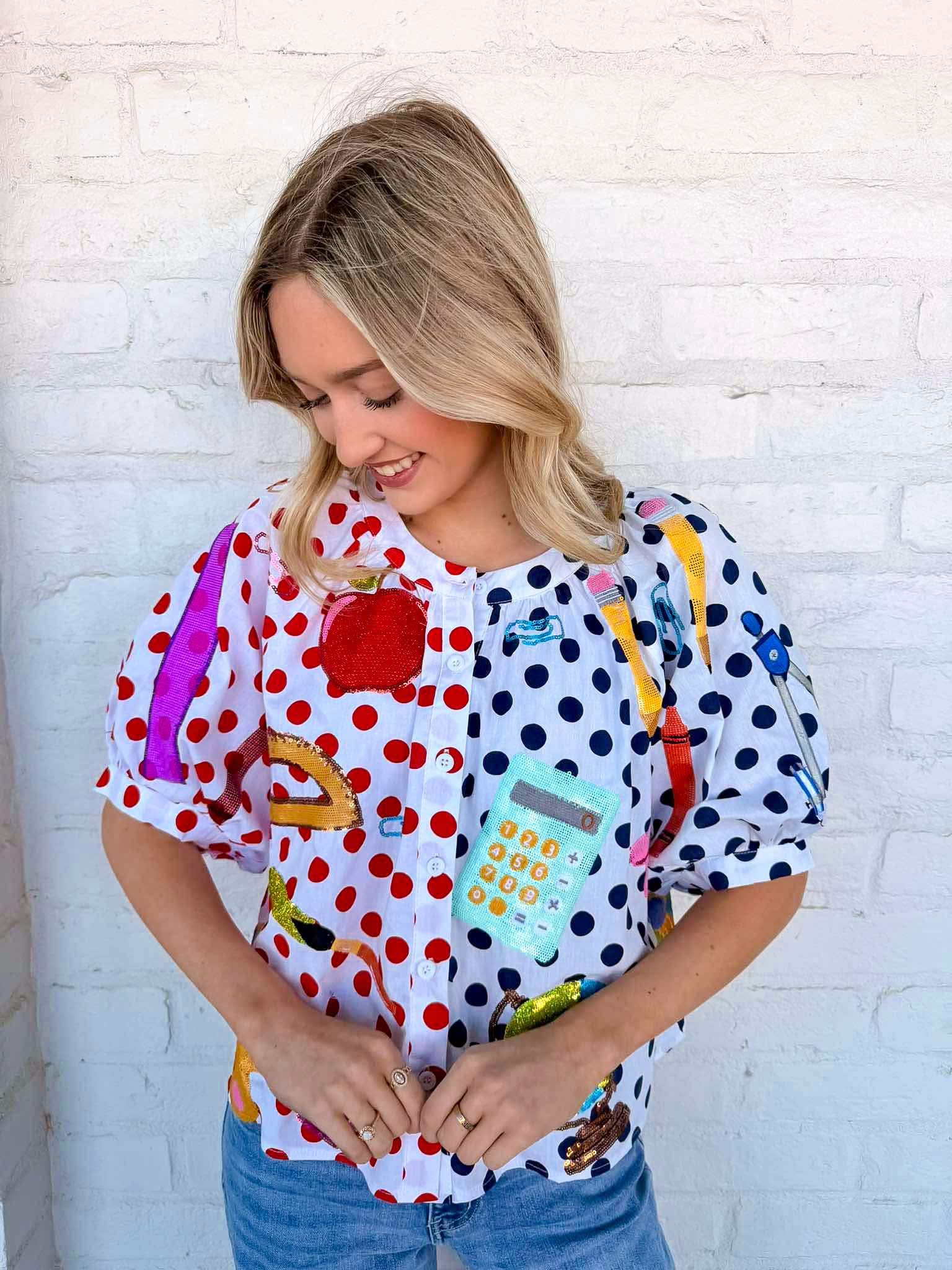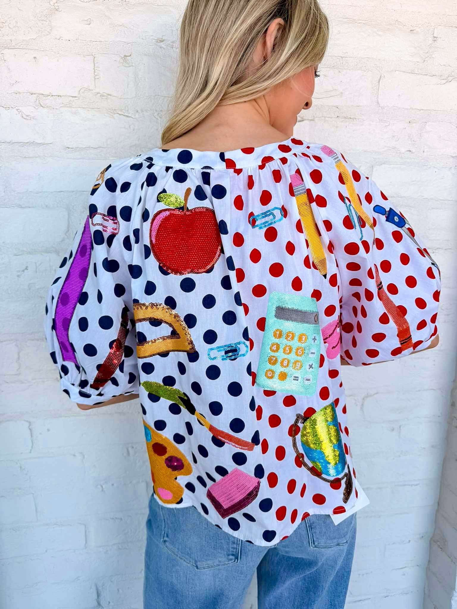 Queen Of Sparkles Color-block Polka Dot Teacher Icon Top