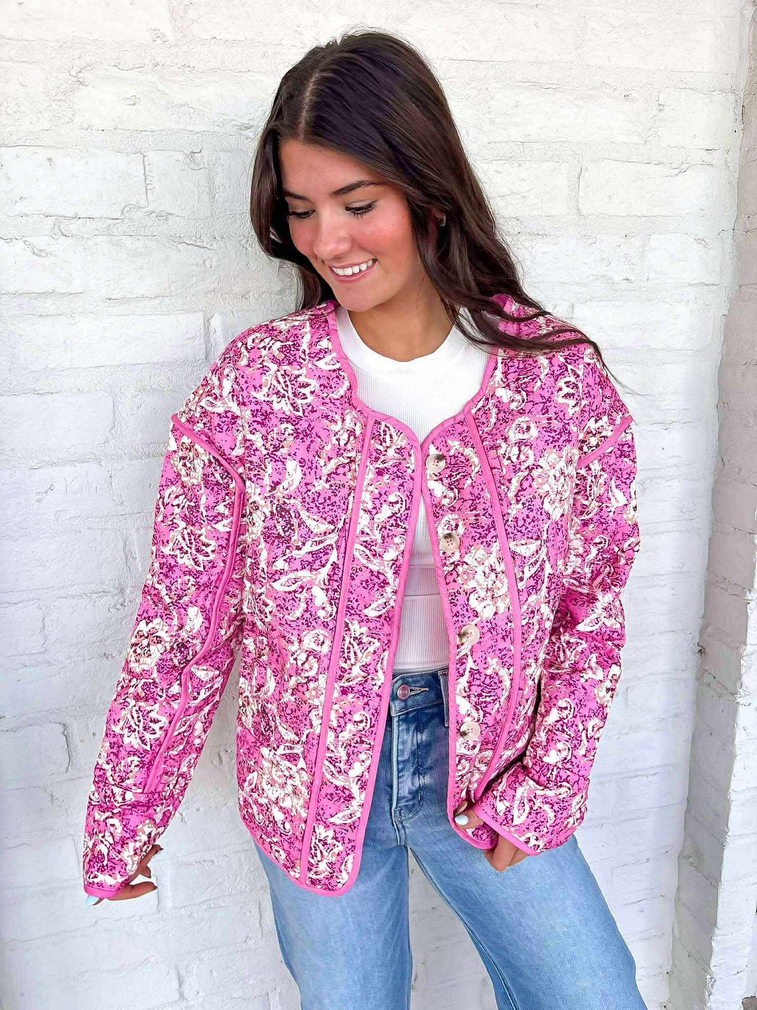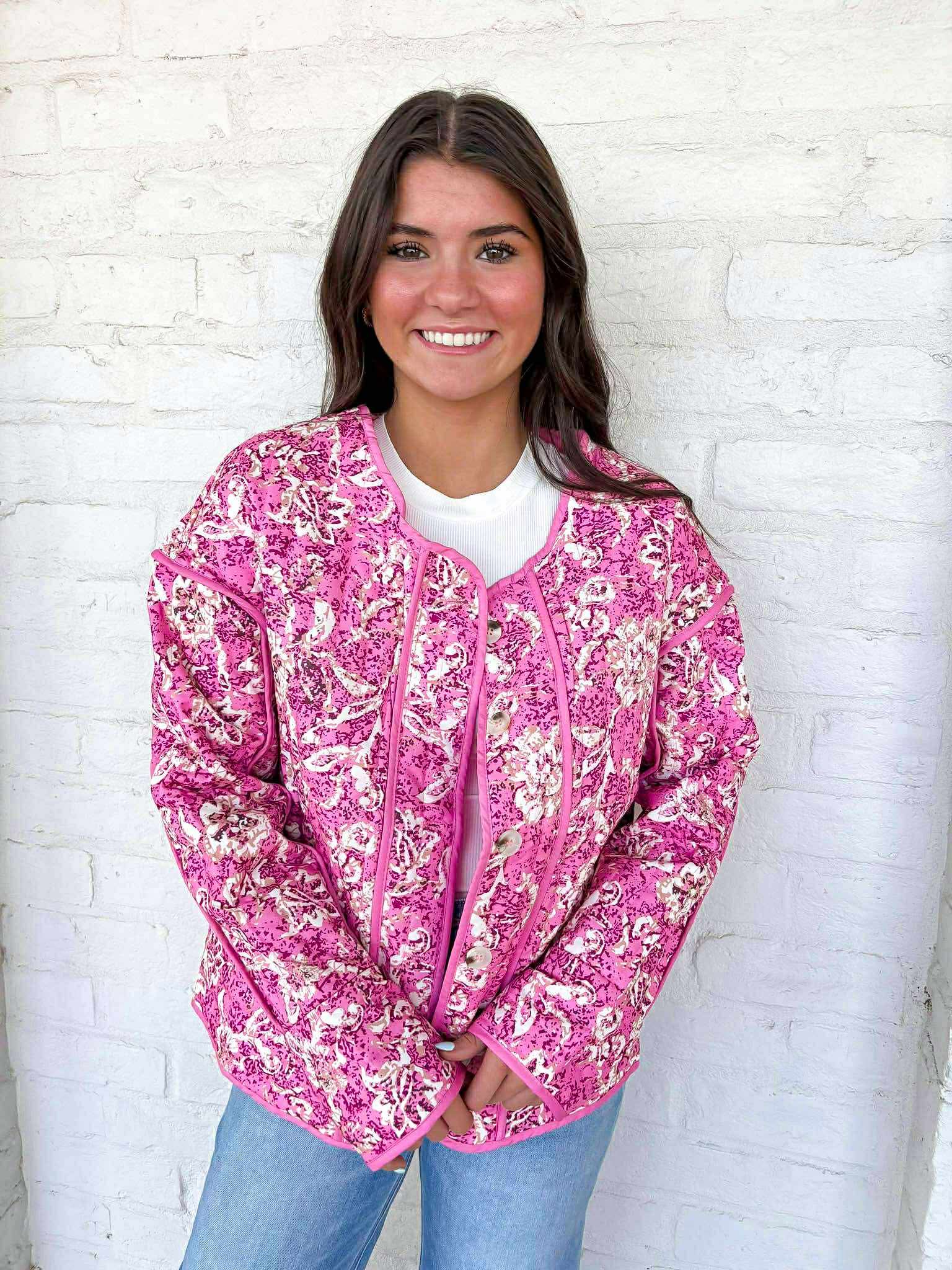 Unleash your inner confidence with our Secrets Are Hidden Pink Jacket! This stunning jacket features a delicate pink and red bow design that adds a touch of femininity to any outfit. Stand out in style and make a statement with this must-have piece in your wardrobe.