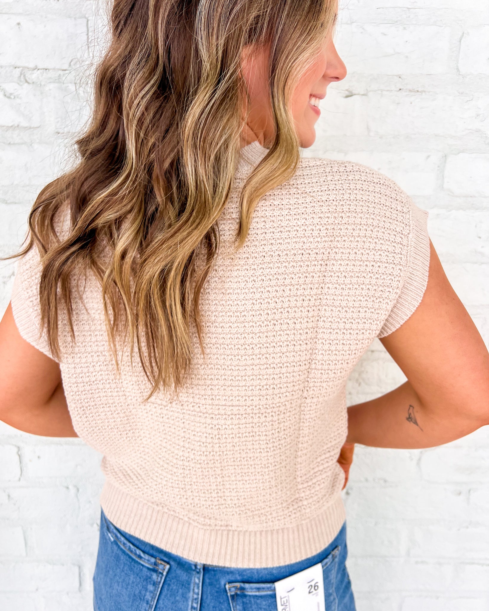 "The Send My Regards Top is a versatile must-have for your wardrobe. This button-down short sleeve knit cardigan vest adds a touch of elegance to any outfit. Its lightweight and comfortable fabric ensures all-day wearability. Stand out in style and make a statement!"