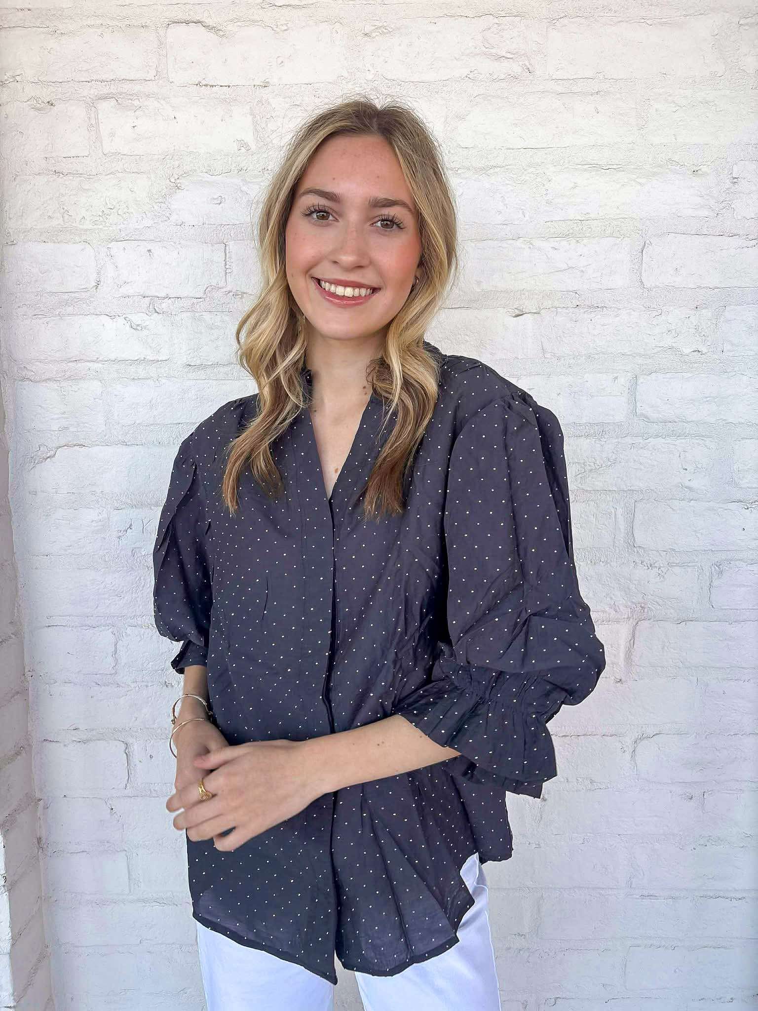 Experience true beauty with our Show You Care Gray Rhinestone Top. Each rhinestone has been carefully placed to create a stunning and sophisticated look. Let your inner beauty shine through with this top that will make you stand out in any occasion. Don't just look beautiful, feel it too!